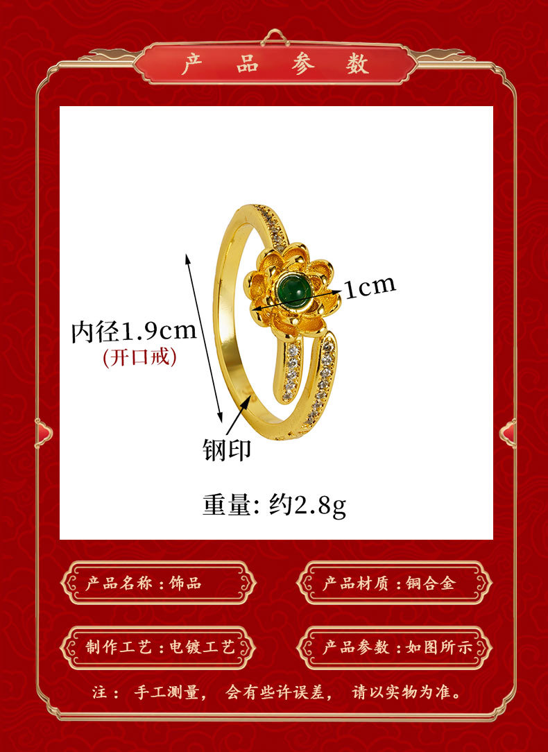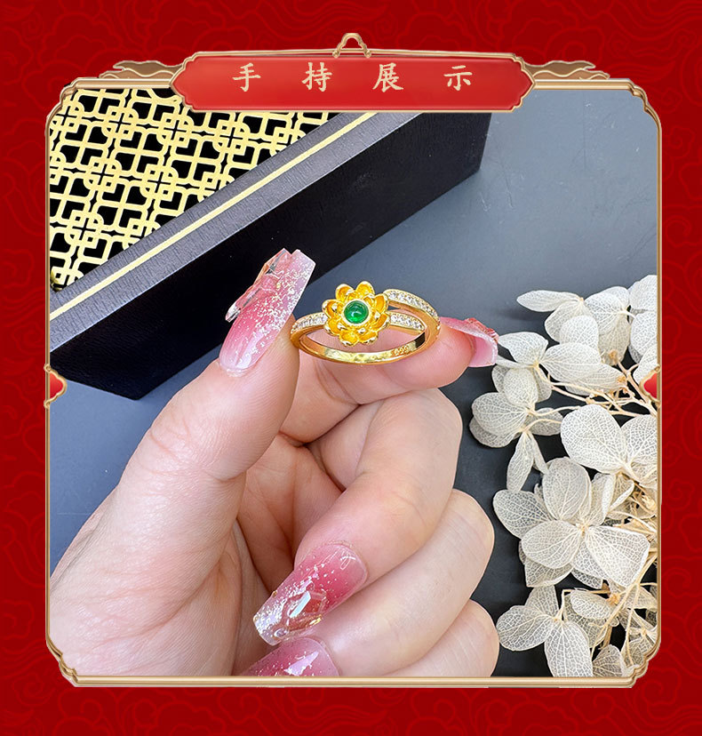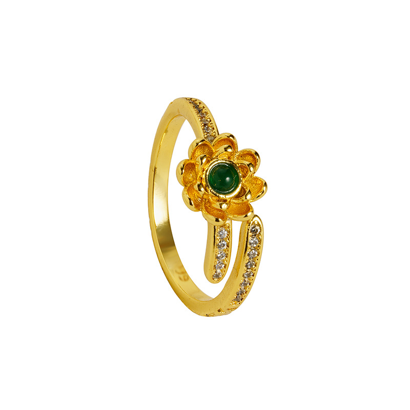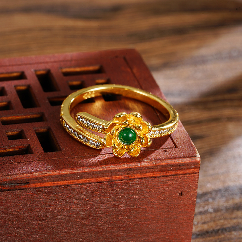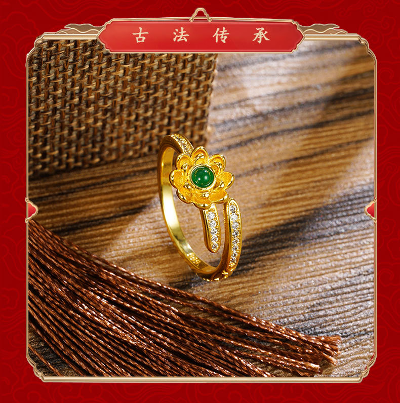 sand gold lotus open ring female niche high-grade luxury retro chinese style gold-plated yiwu accessories jewelry 中文版