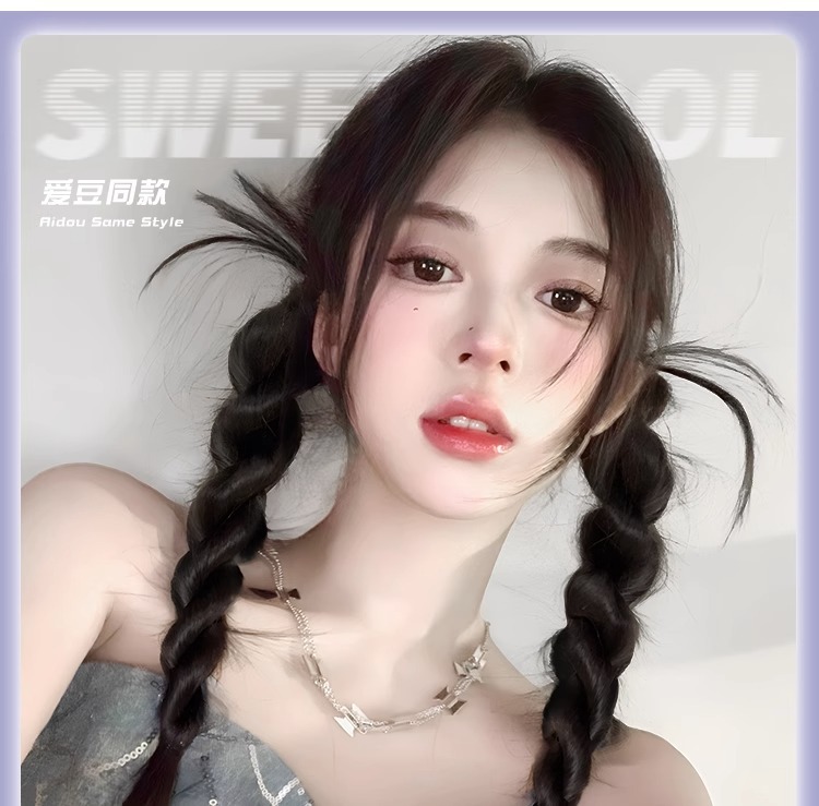 wig braid shake same style sweet cool chicken hair two-strand braid hot girl dreadlocks wig double ponytail wig braid hair braid