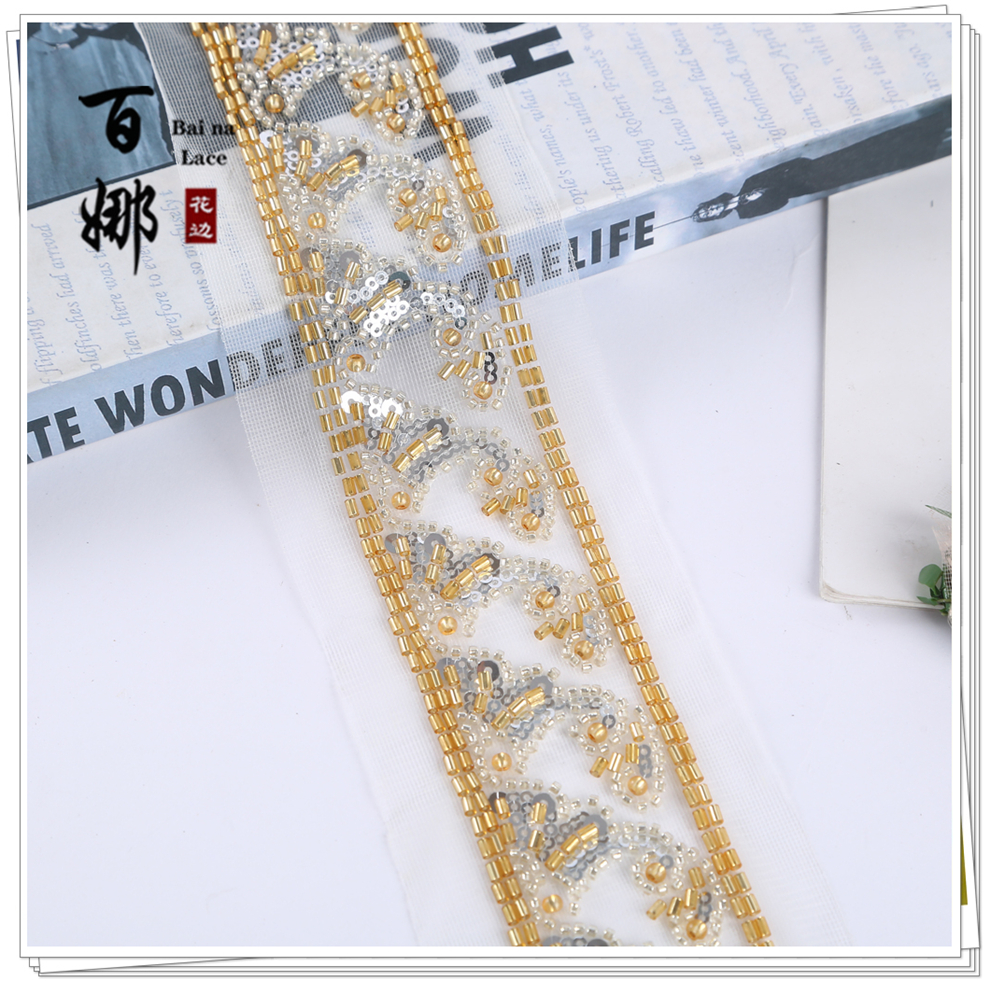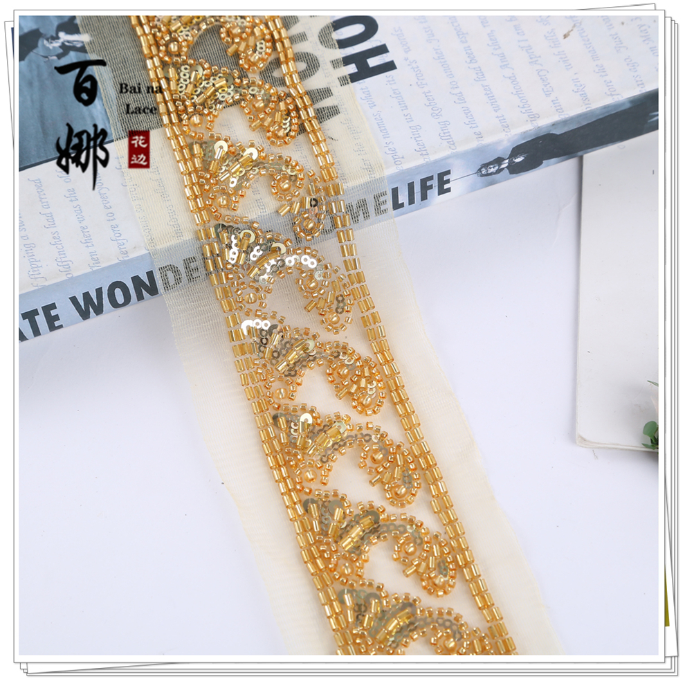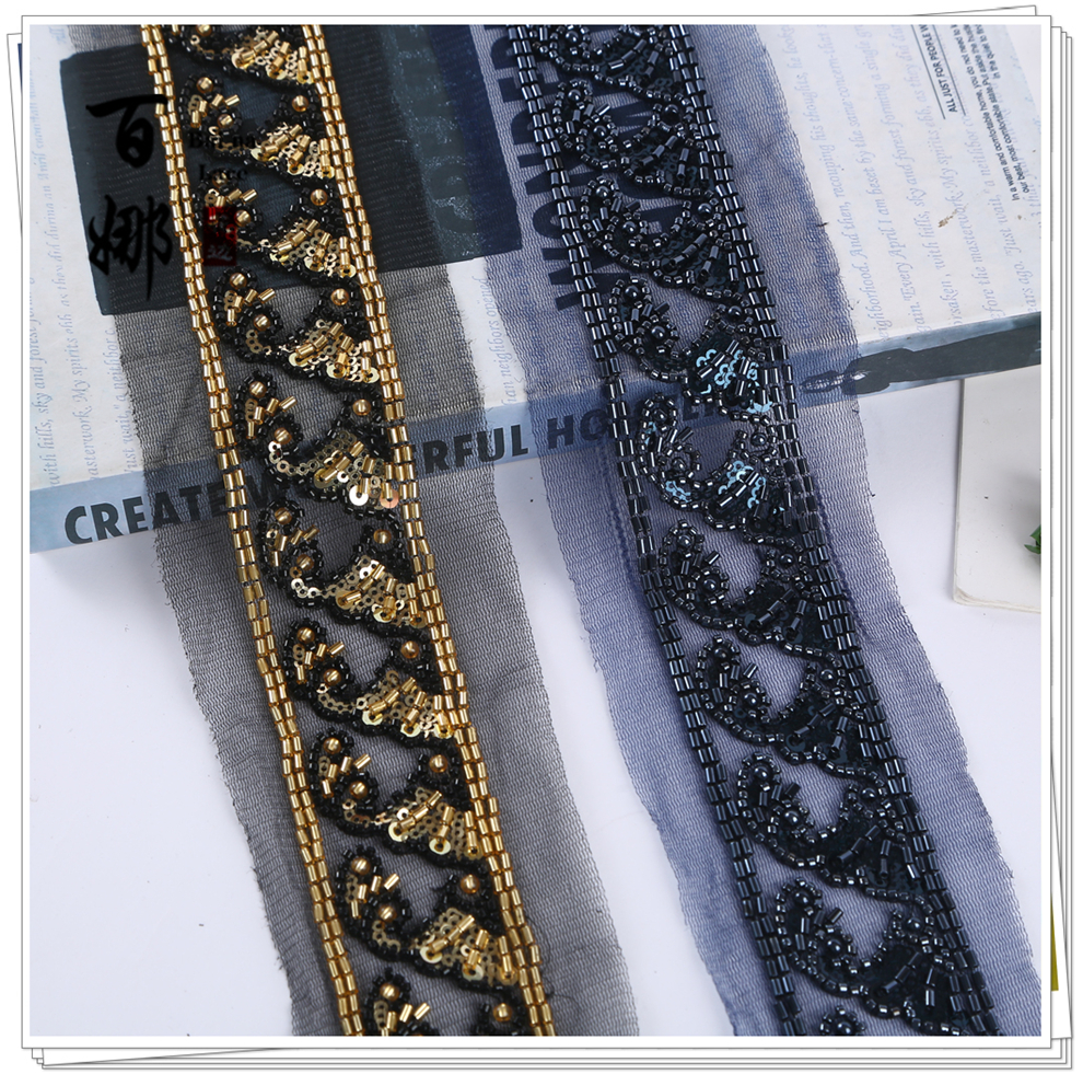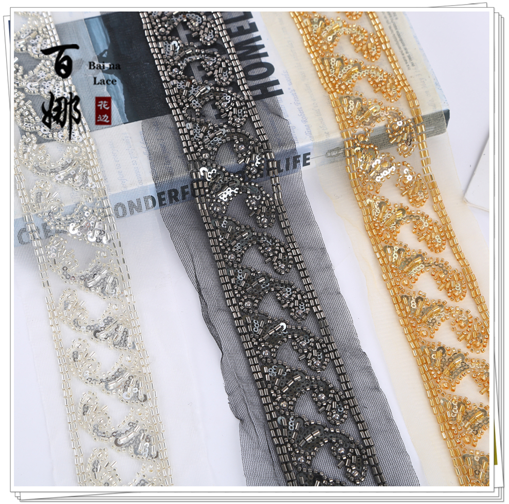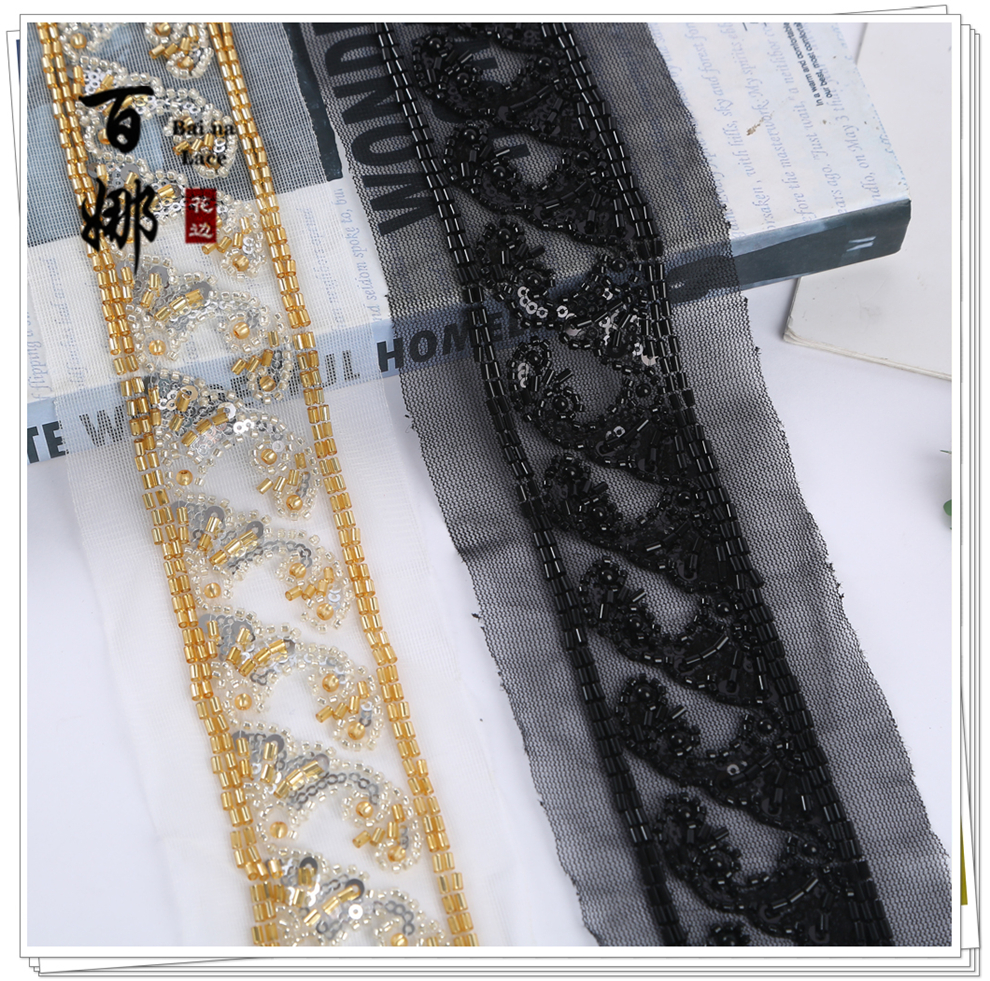 Product Name: In-stock Netting Handcrafted Beaded Tube Lace Trim Flower Edge, Beaded Lace Accessories for Clothing Hair Accessories DIY Weaving Ribbon, Multiple Colors Available