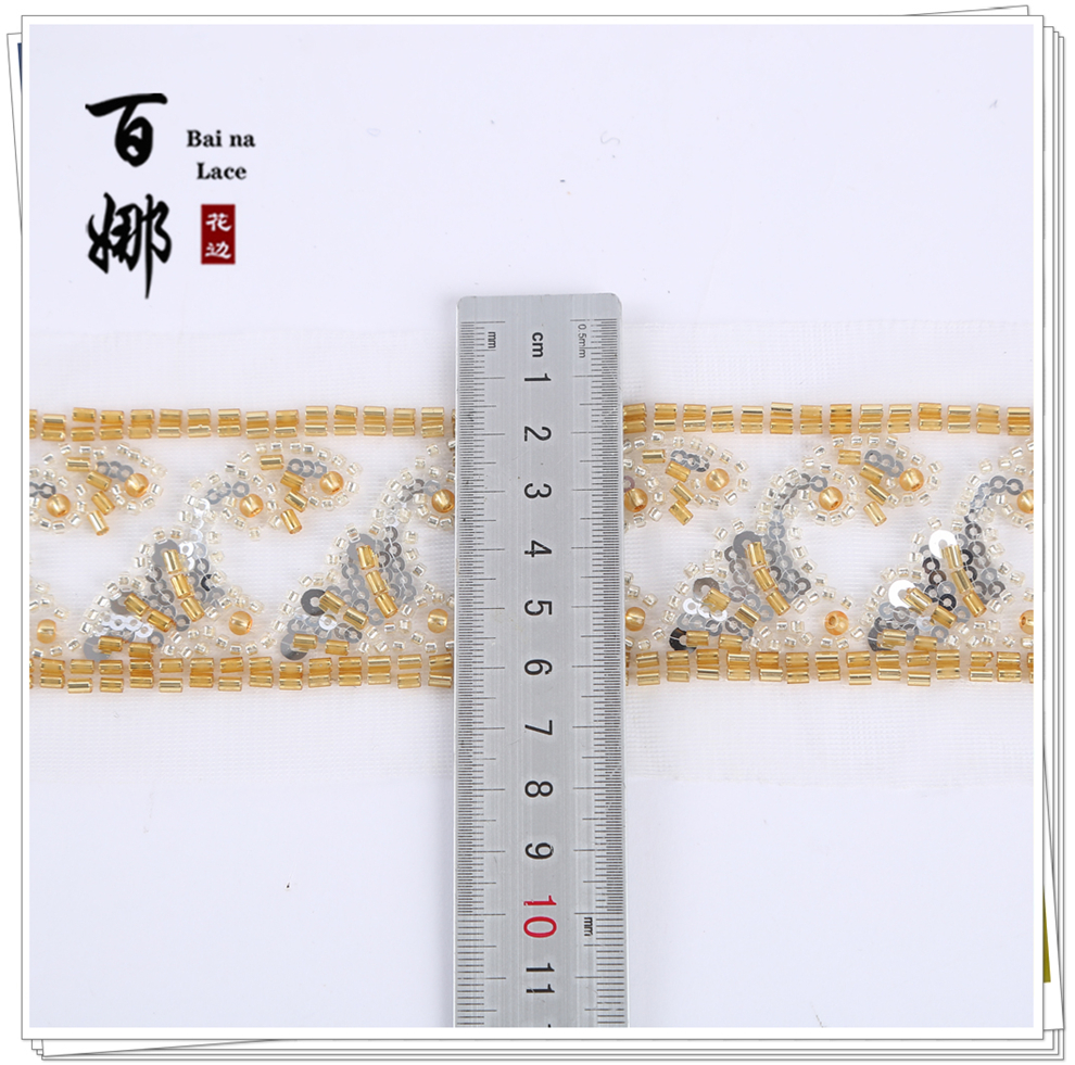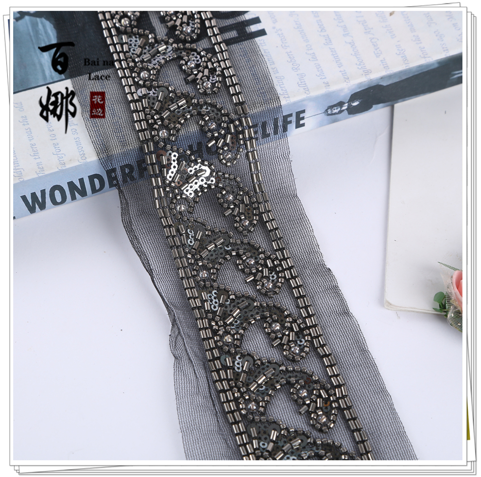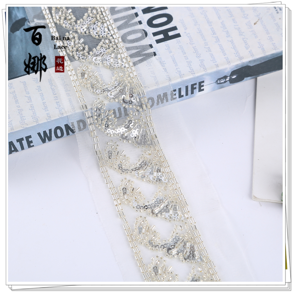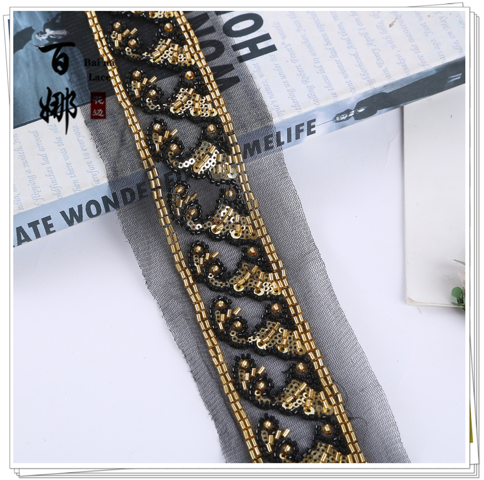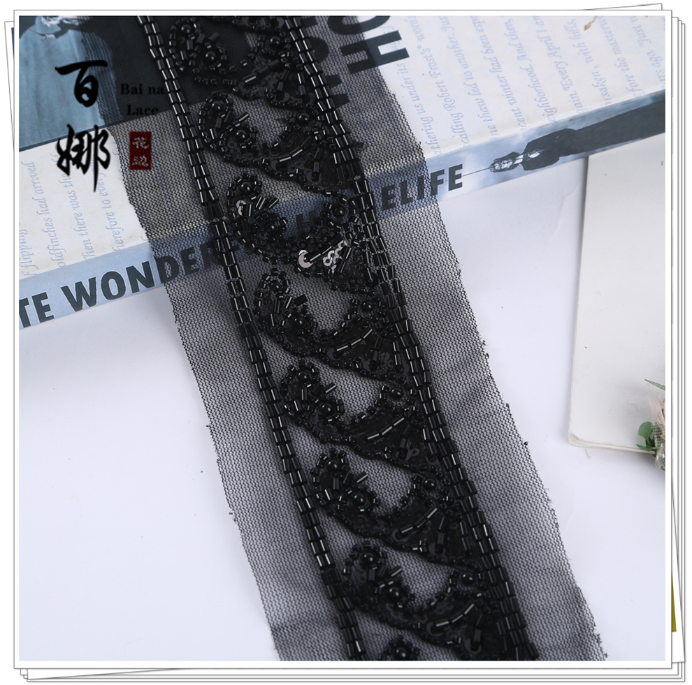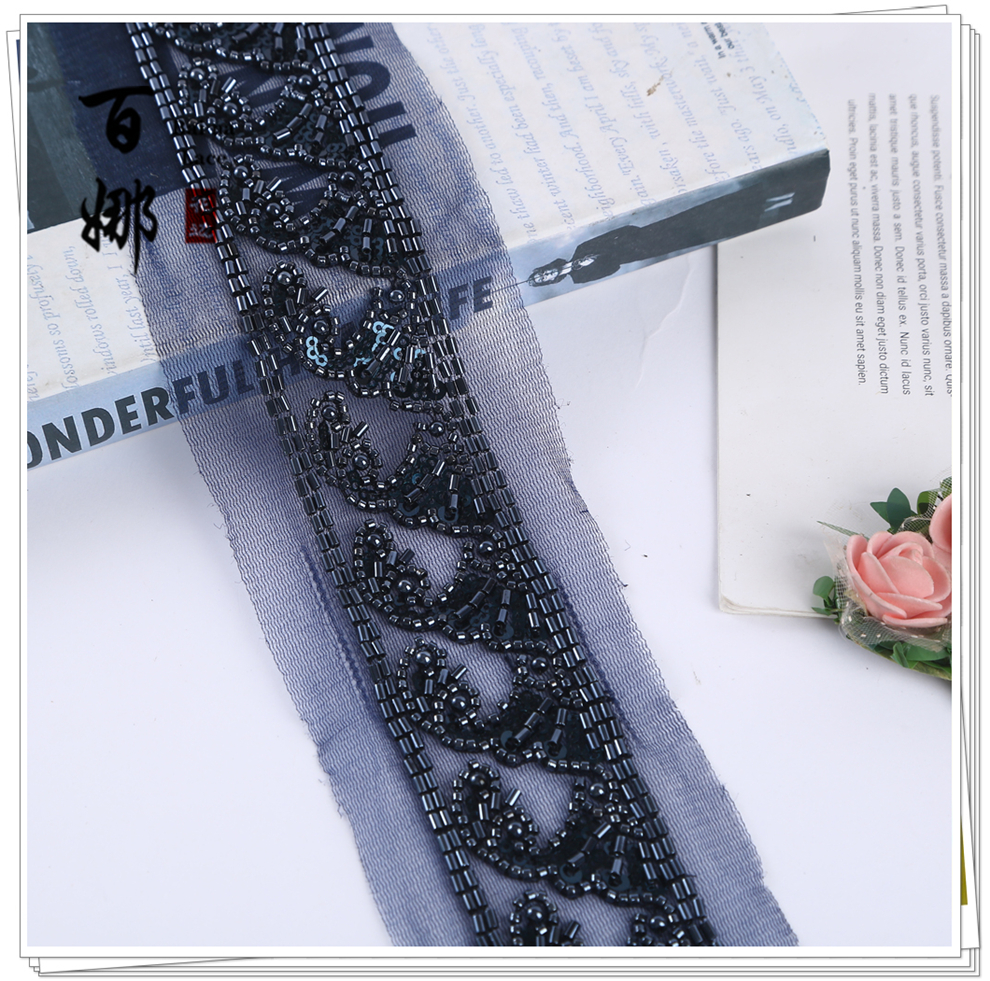 Product Name: In-stock Netting Handcrafted Beaded Tube Lace Trim Flower Edge, Beaded Lace Accessories for Clothing Hair Accessories DIY Weaving Ribbon, Multiple Colors Available