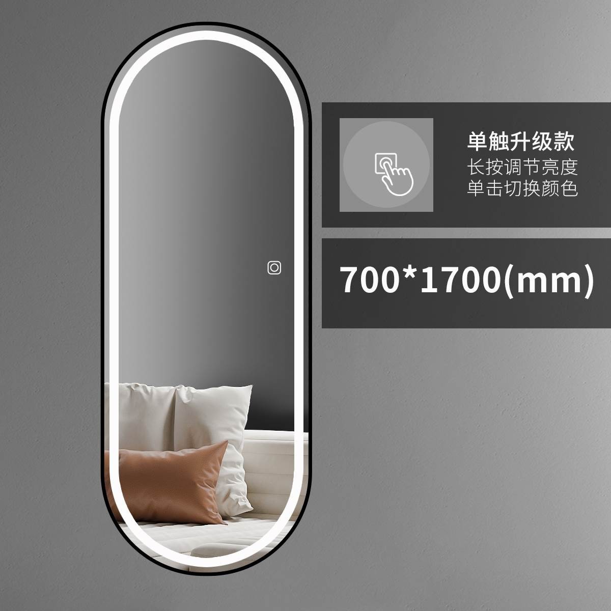 charming black 700*1700 single touch electrodeless dimming (brightness adjustment)-default white light
