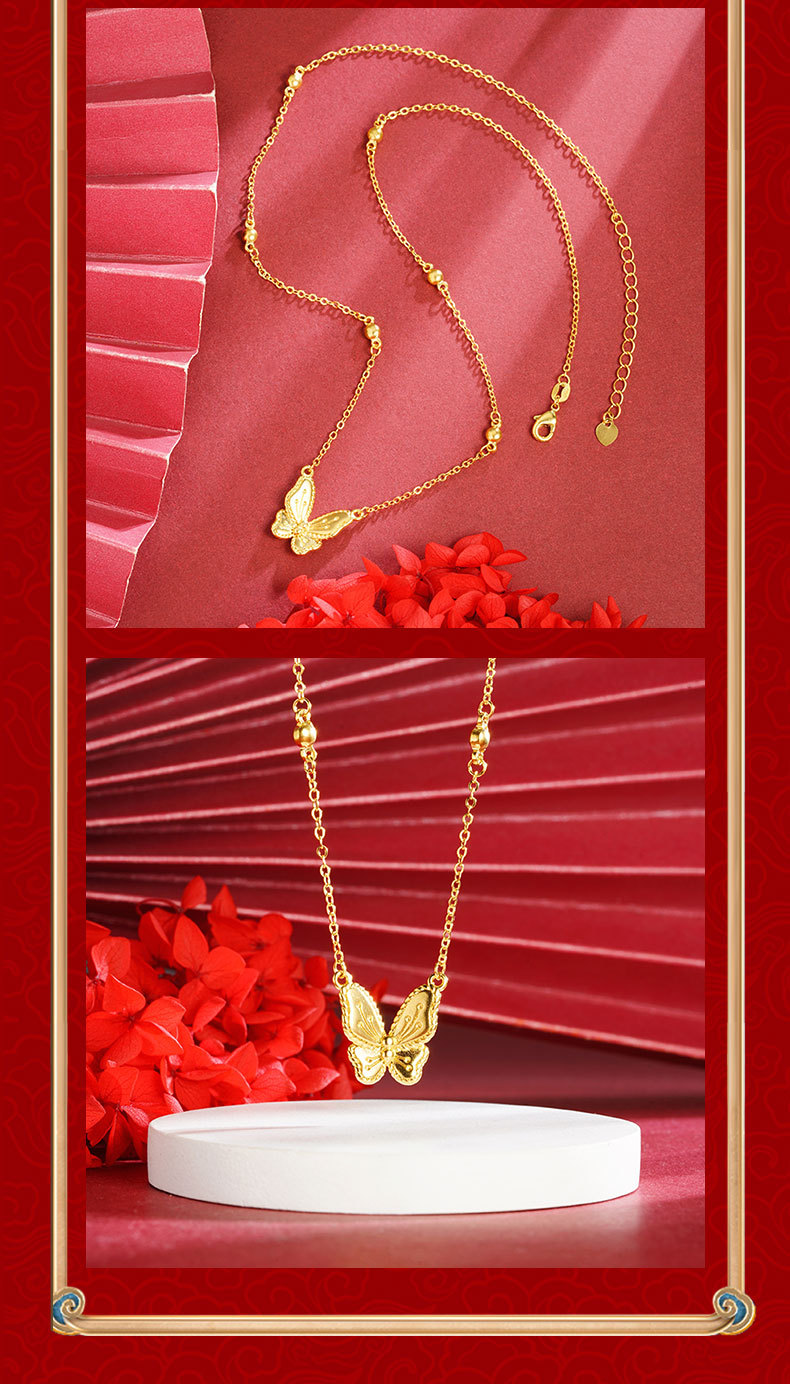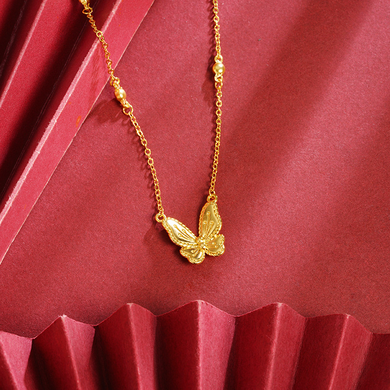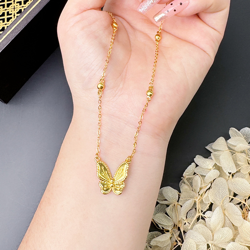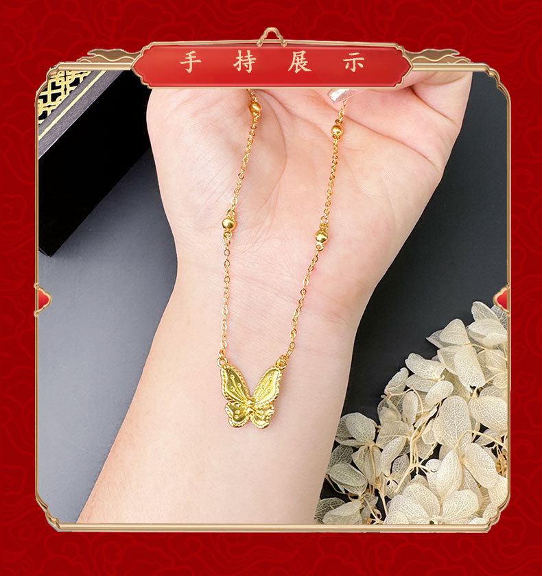 no color fading alluvial gold flower and moon goodcare spiritual dream butterfly necklace temperament entry lux high-grade fashion temperament jewelry 中文版