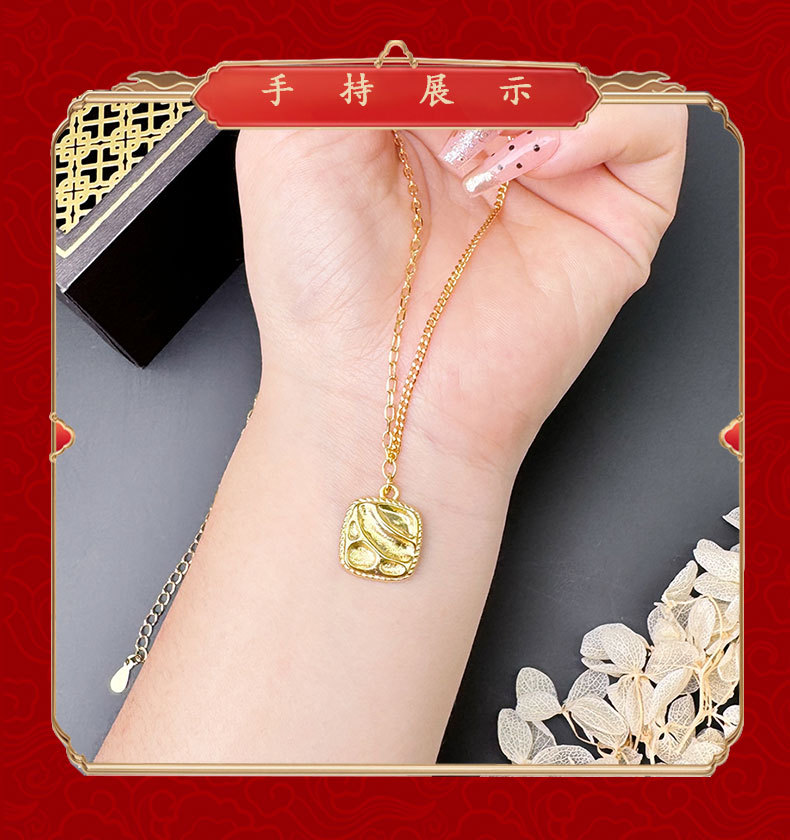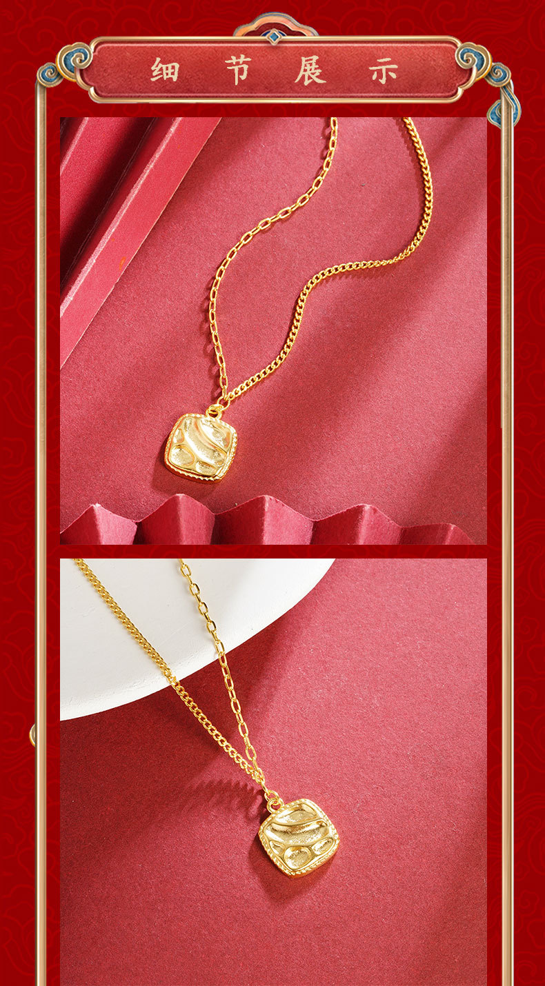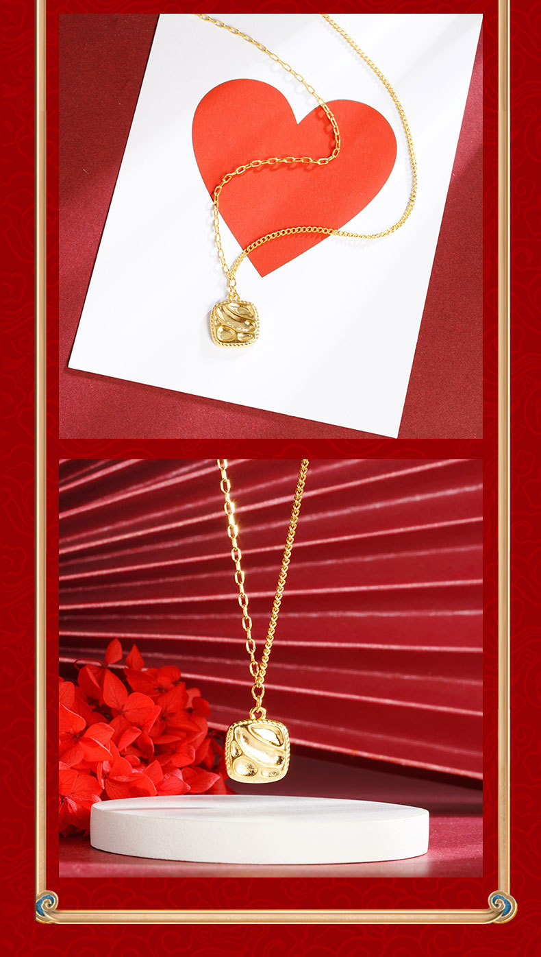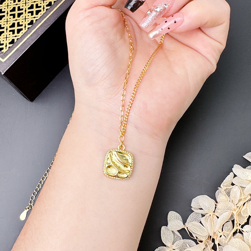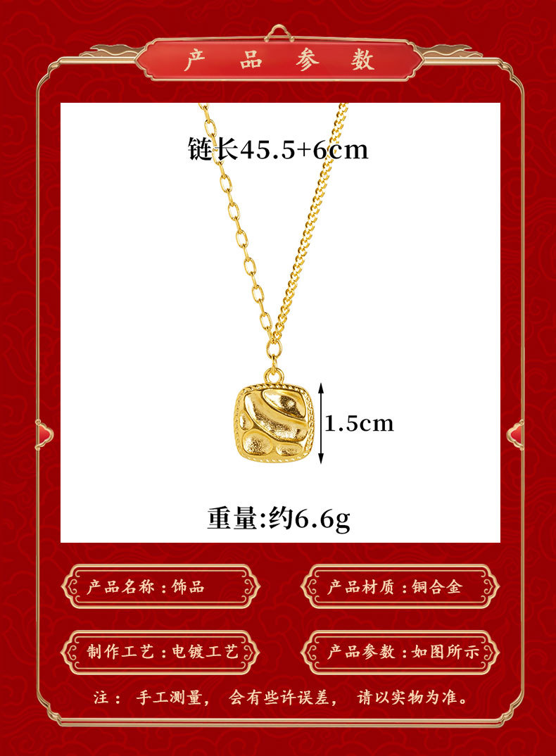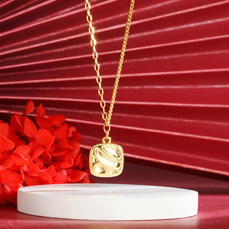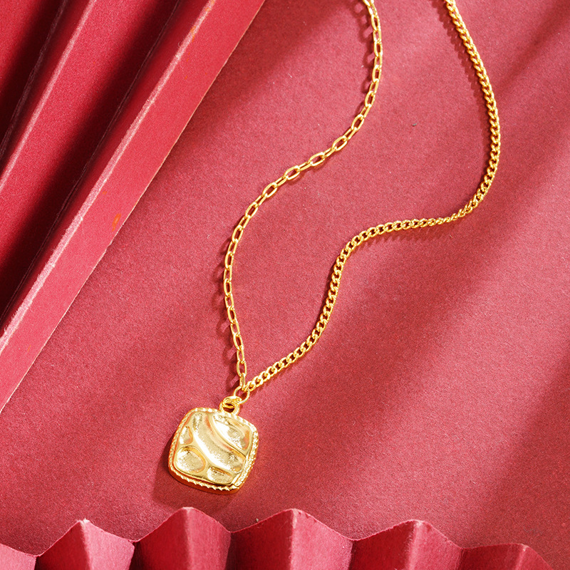 vietnam ancient style alluvial gold square corrugated geometric necklace niche design simple all-match high sense no color fading 中文版