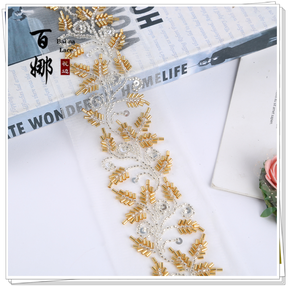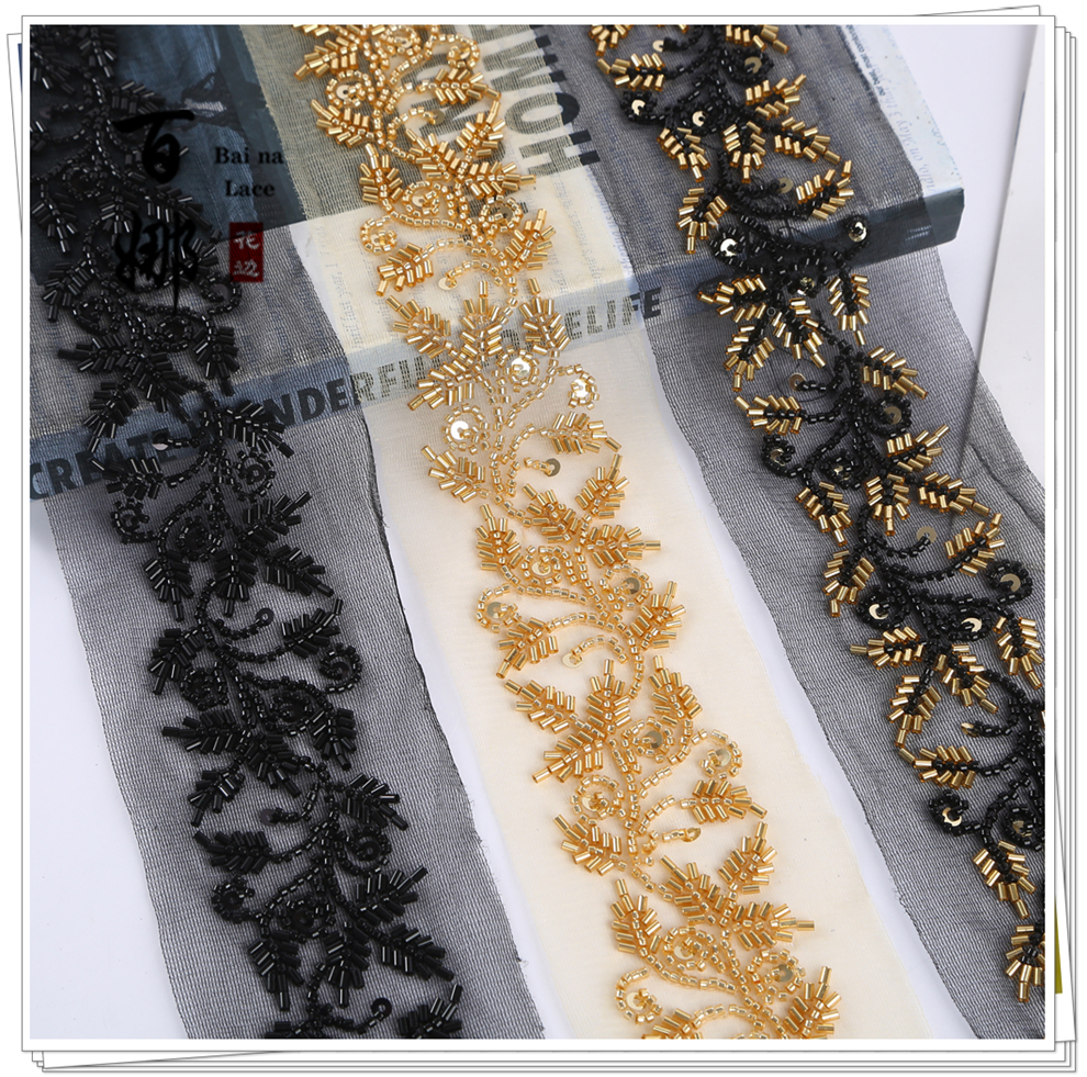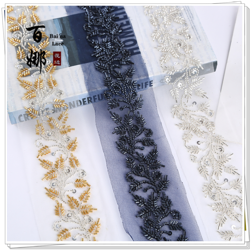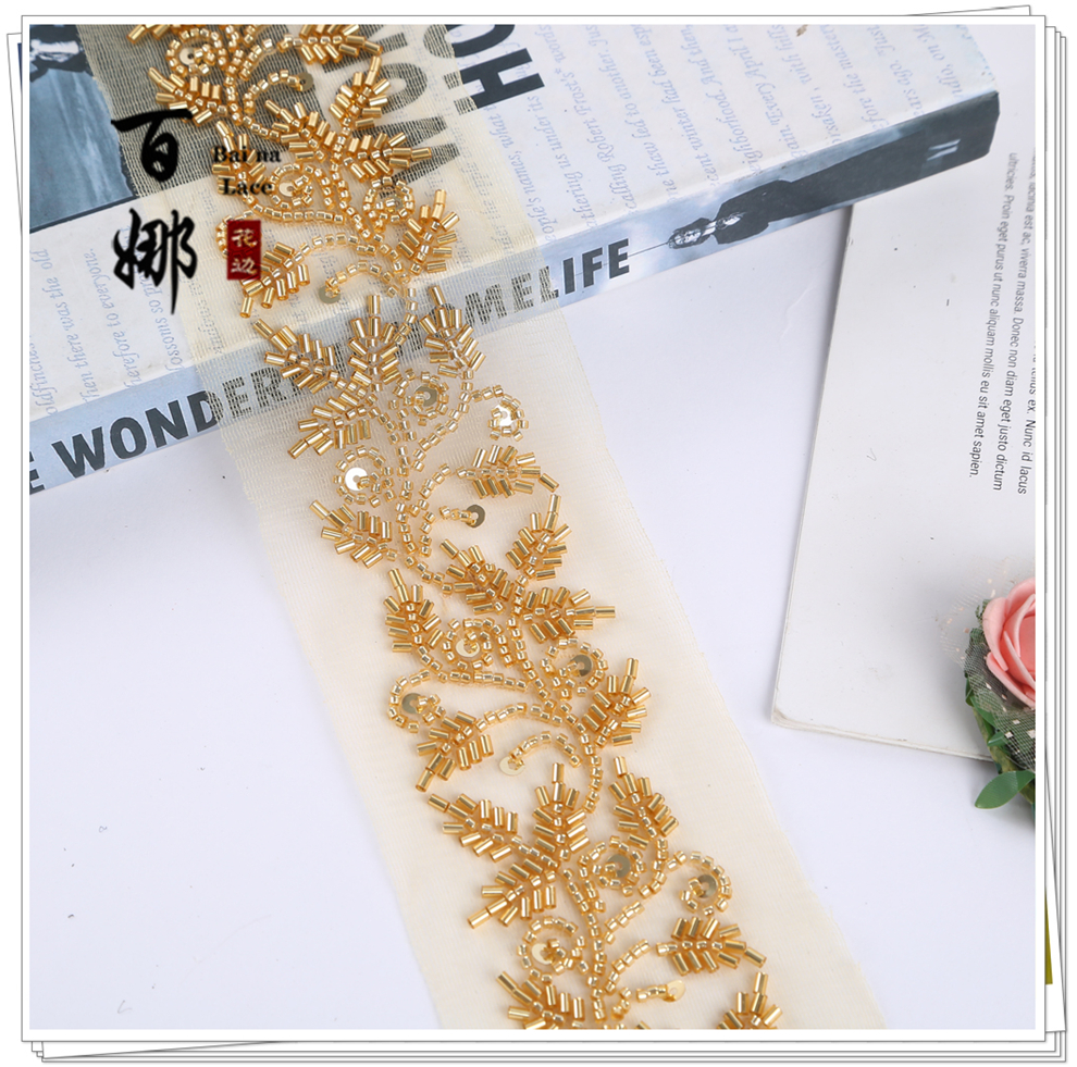 Product Name: In-stock wholesale beading tube lace edge Handmade DIY retro ethnic style Hanfu Qipao barcode weaving belt