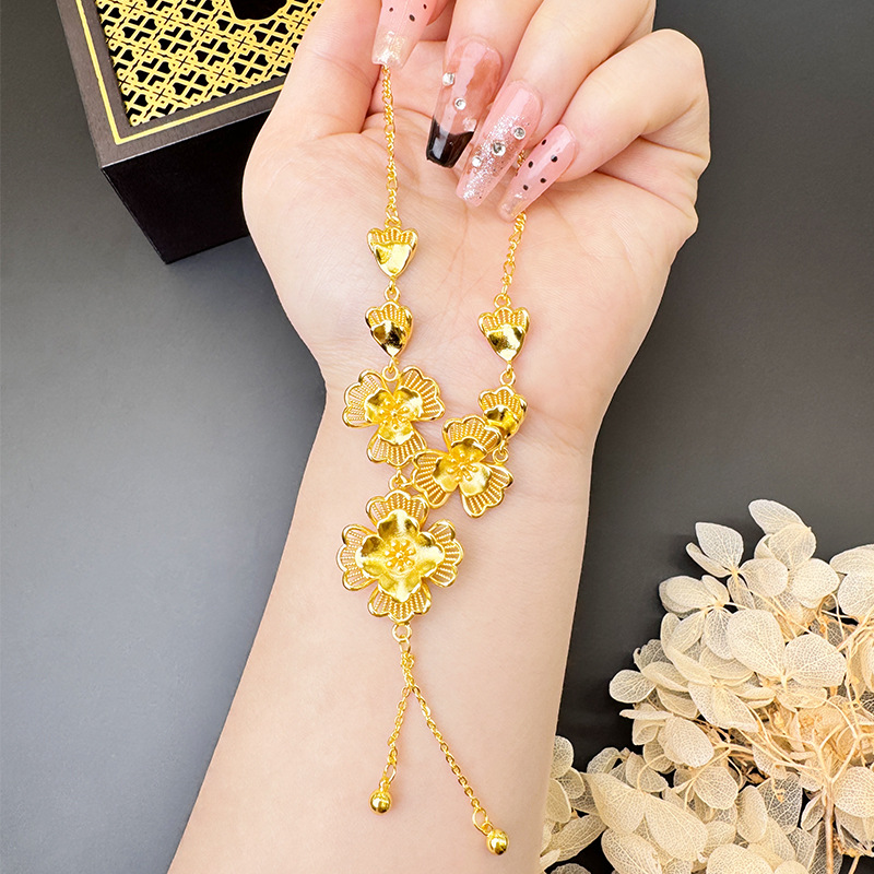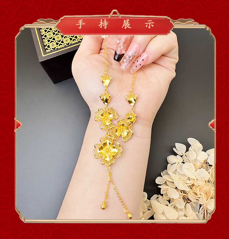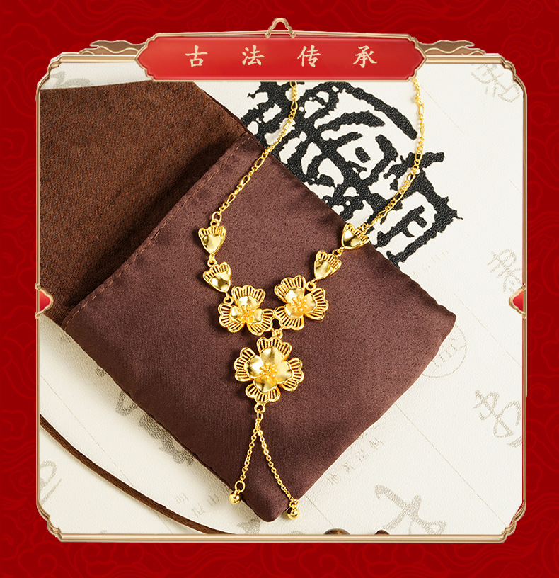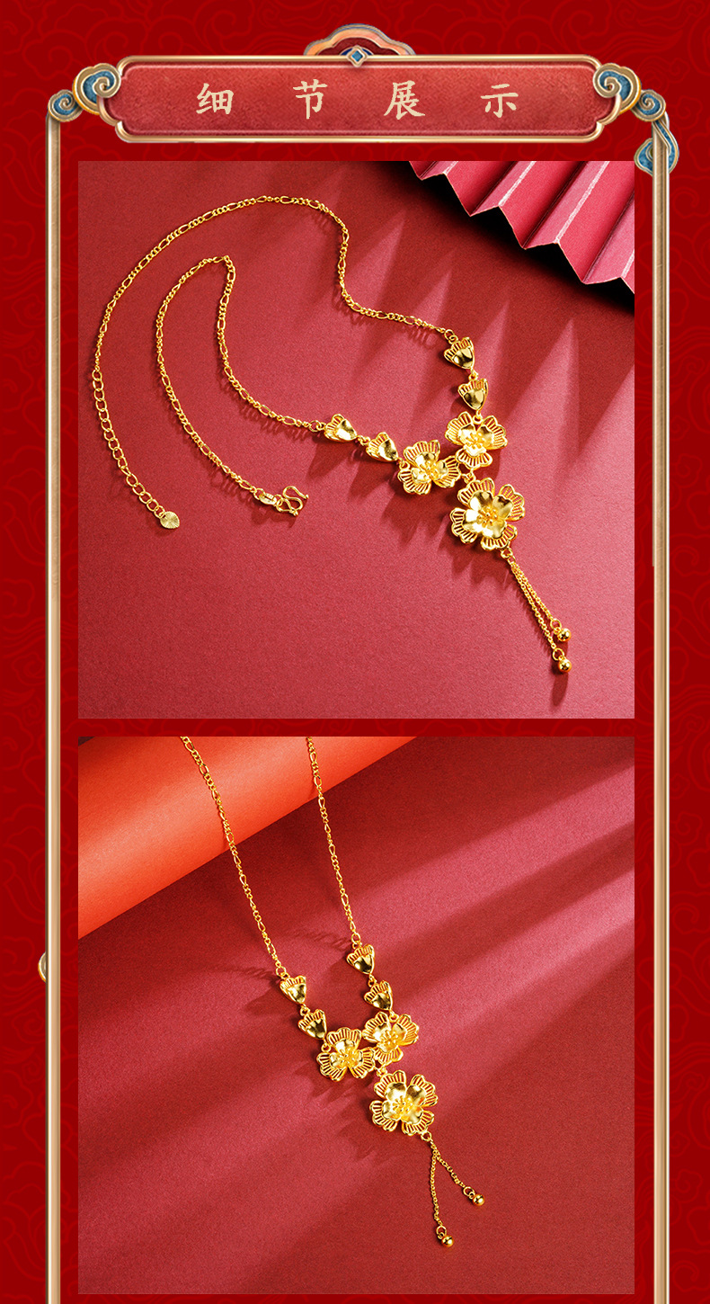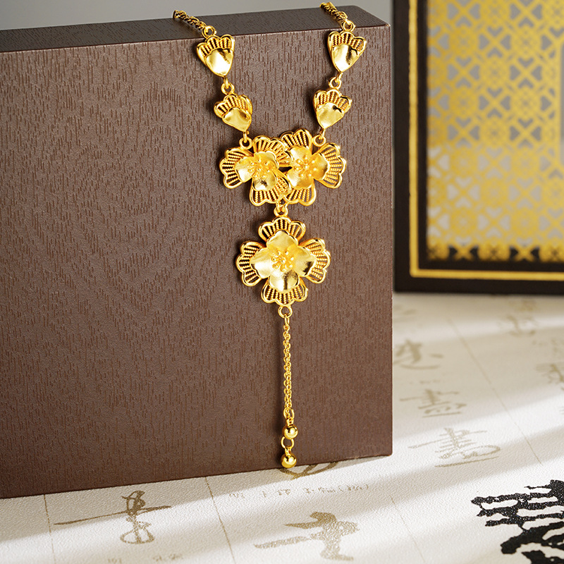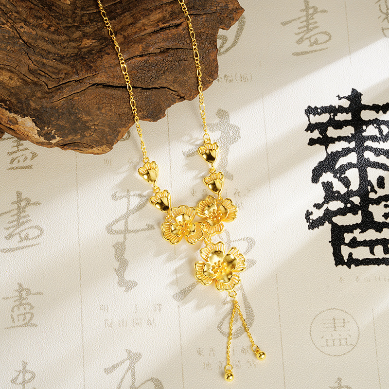 ancient style alluvial gold lilac hollow necklace women's tassel temperament entry lux versatile high sense ornament no color fading 中文版