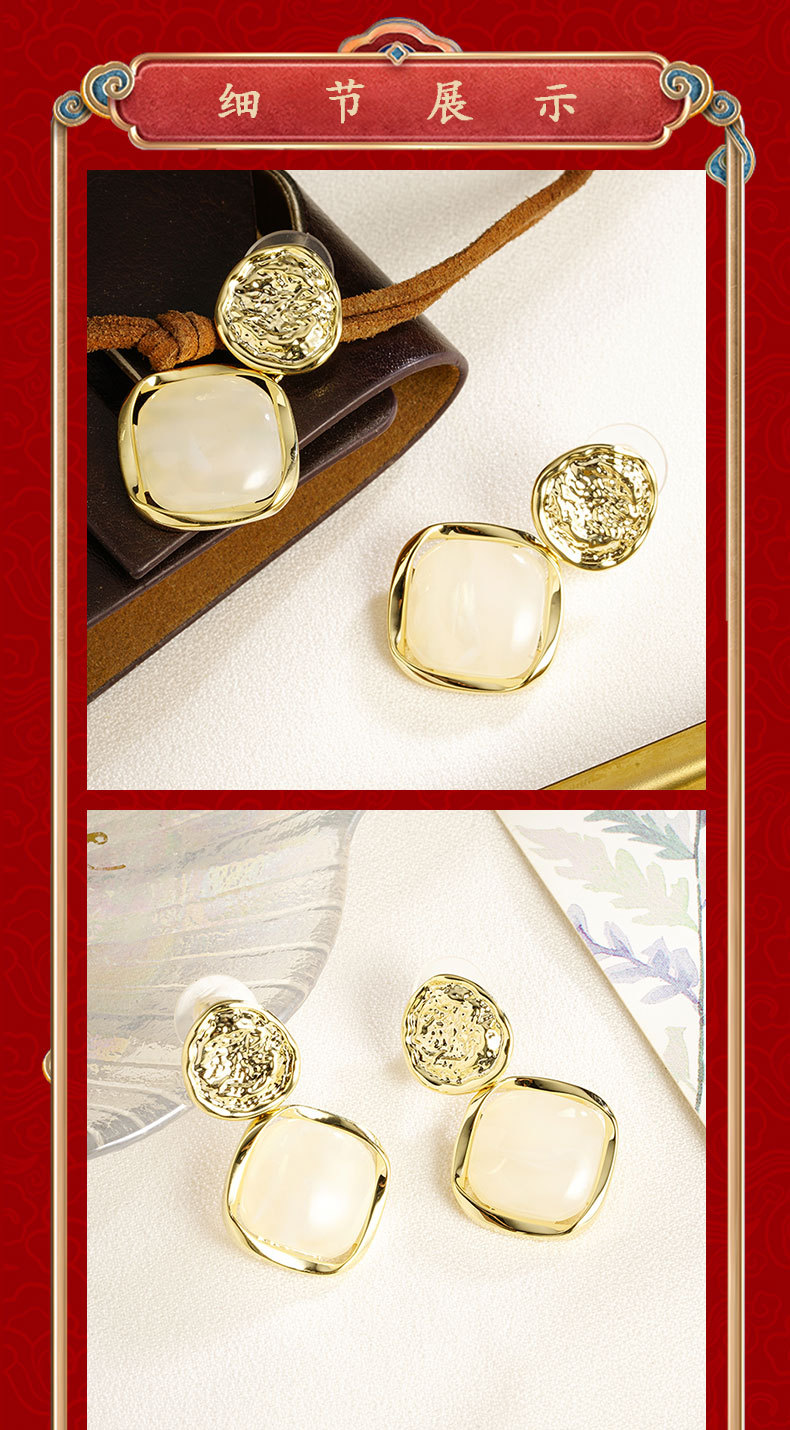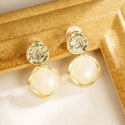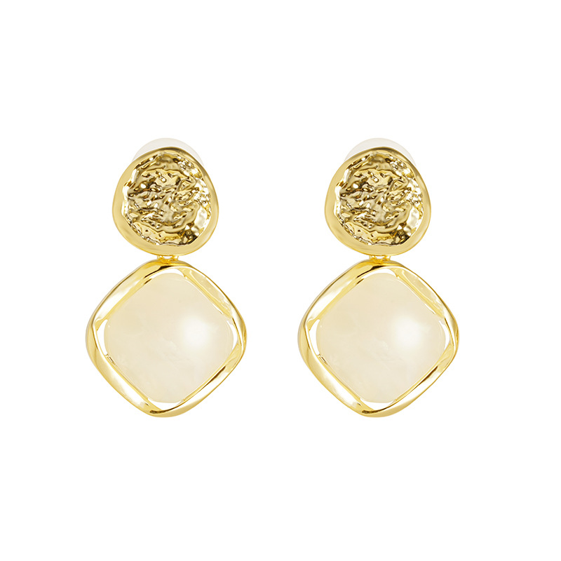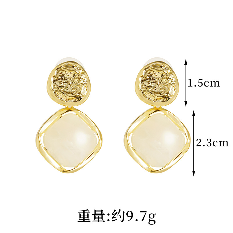round hammer pattern inlaid quadrilateral geometric eardrops french vintage style elegant temperament entry lux high sense ear rings 中文版