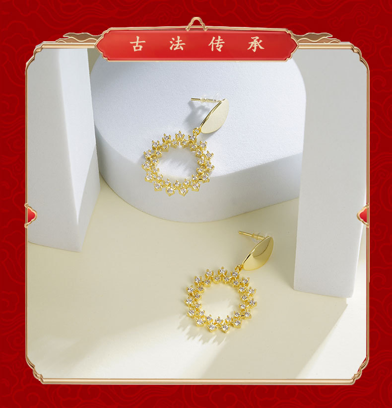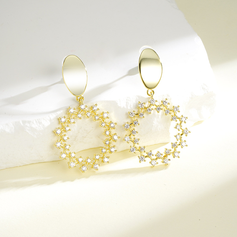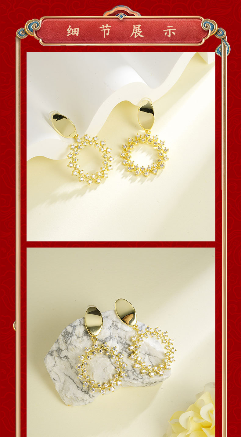 oval geometric micro-inlaid hollow four-corner star lace earrings french retro affordable luxury special-interest design high-grade ornament 中文版