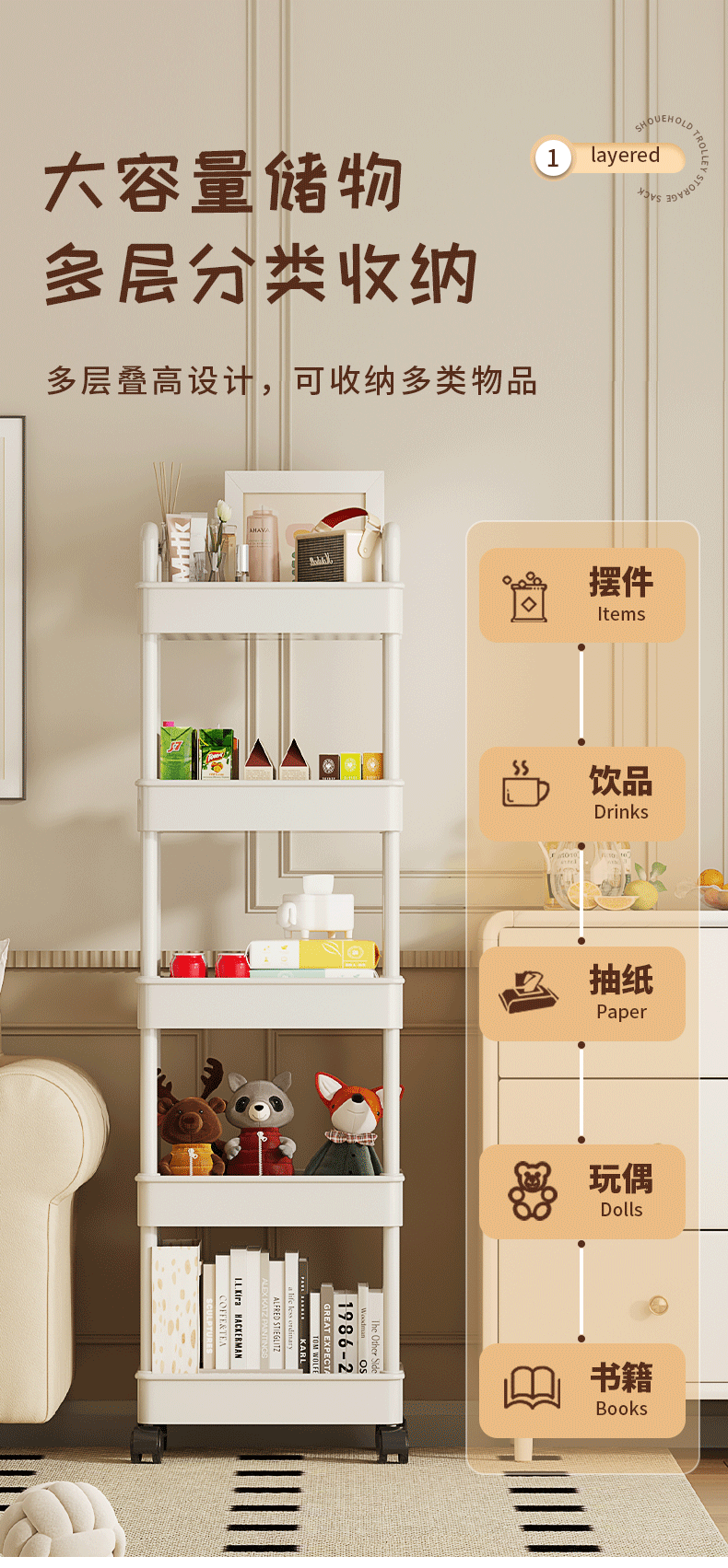 five layers-upgrade acrylic + get 4 silent wheel +2 wall-mounted box