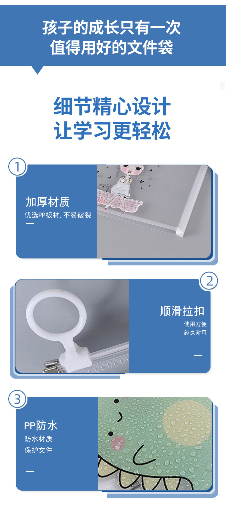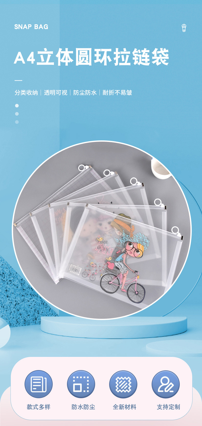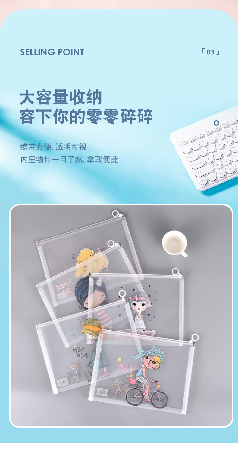 wholesale cartoon color file bag pp edge sliding bag three-dimensional ring zipper bag office study buggy bag pregnancy test