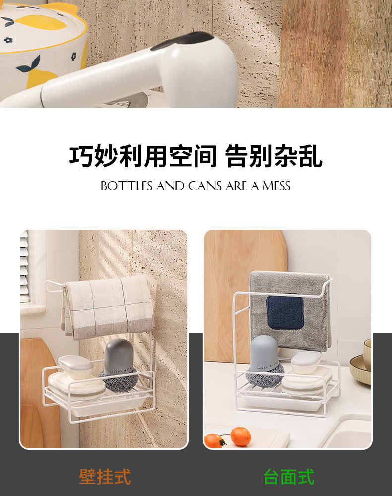 cross-border new arrival sponge rag rack countertop punch-free multi-purpose draining rack rag rack kitchen storage rack