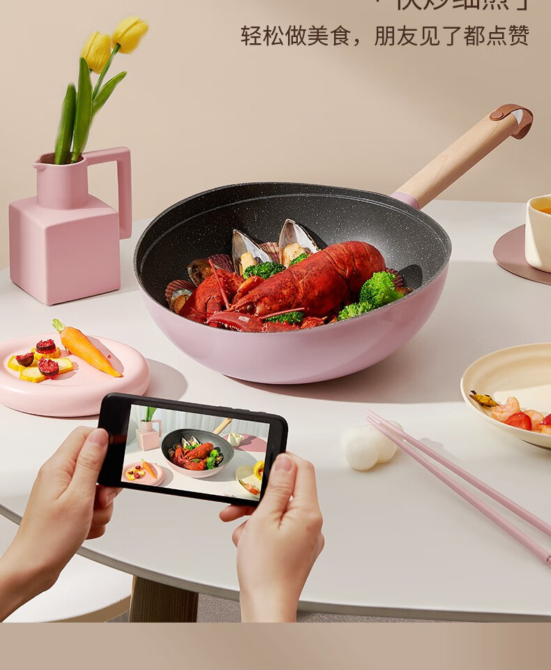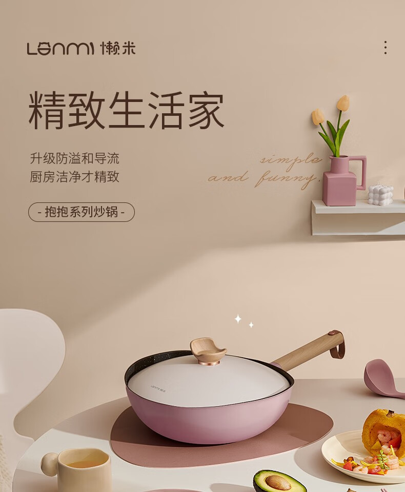 lazy beige pink hug pot with neoflam milk pot