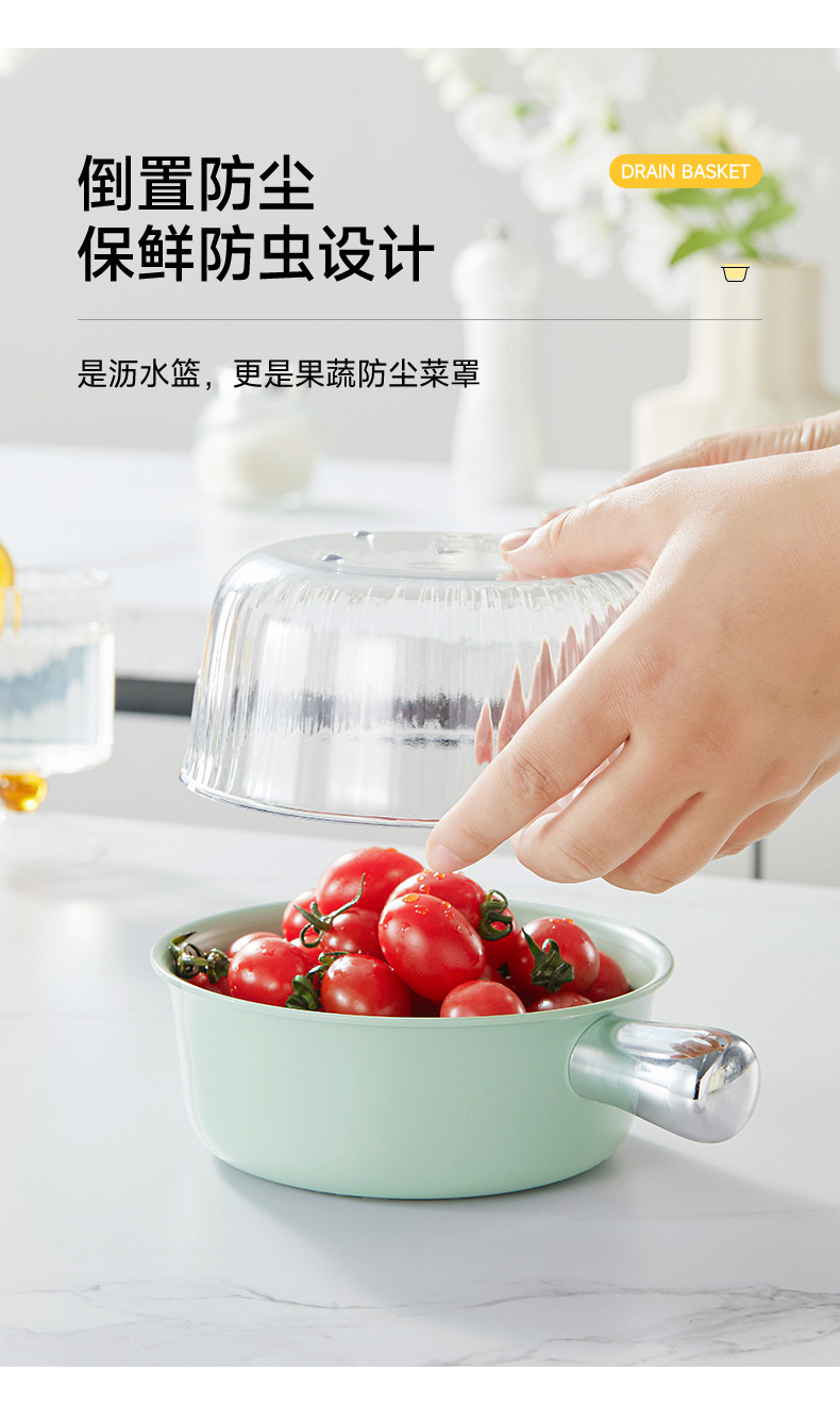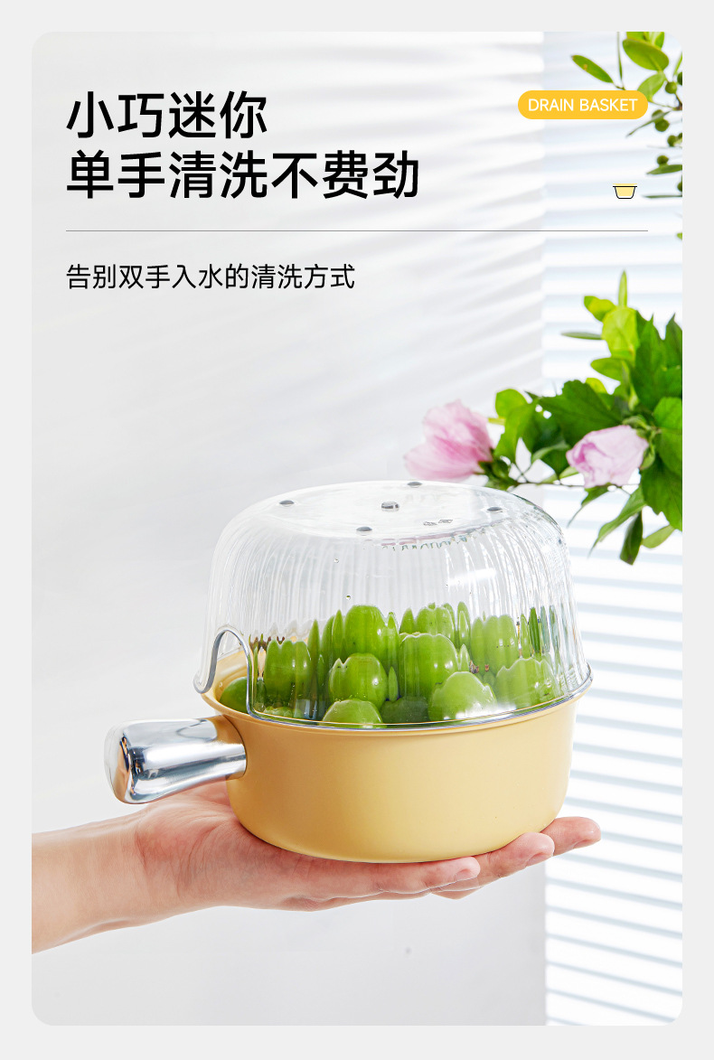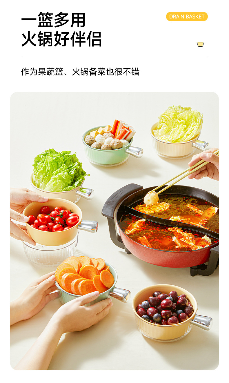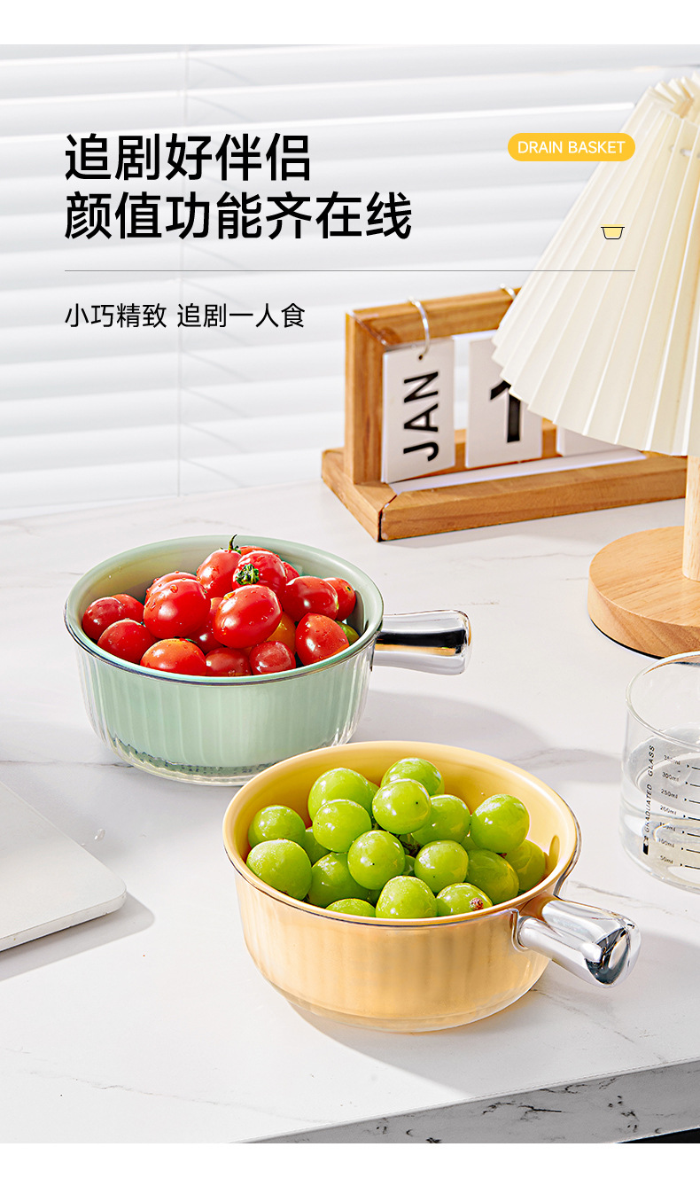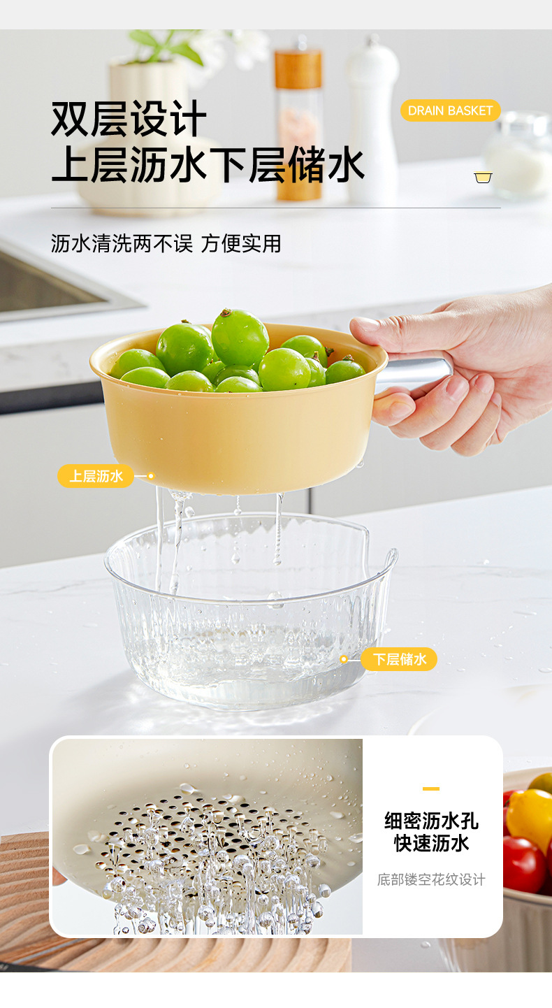 Double-layer vegetable basin mini drain basket kitchen household fruit plate living room rice washing tool washing fruits and vegetables with handle |