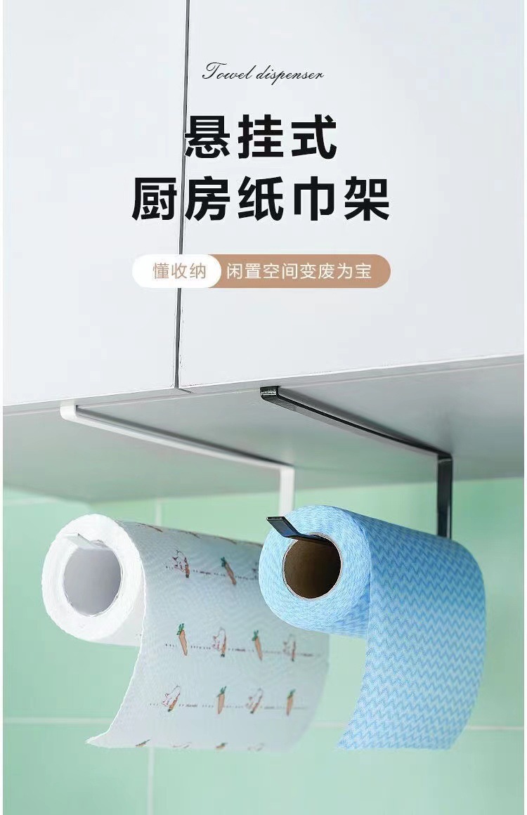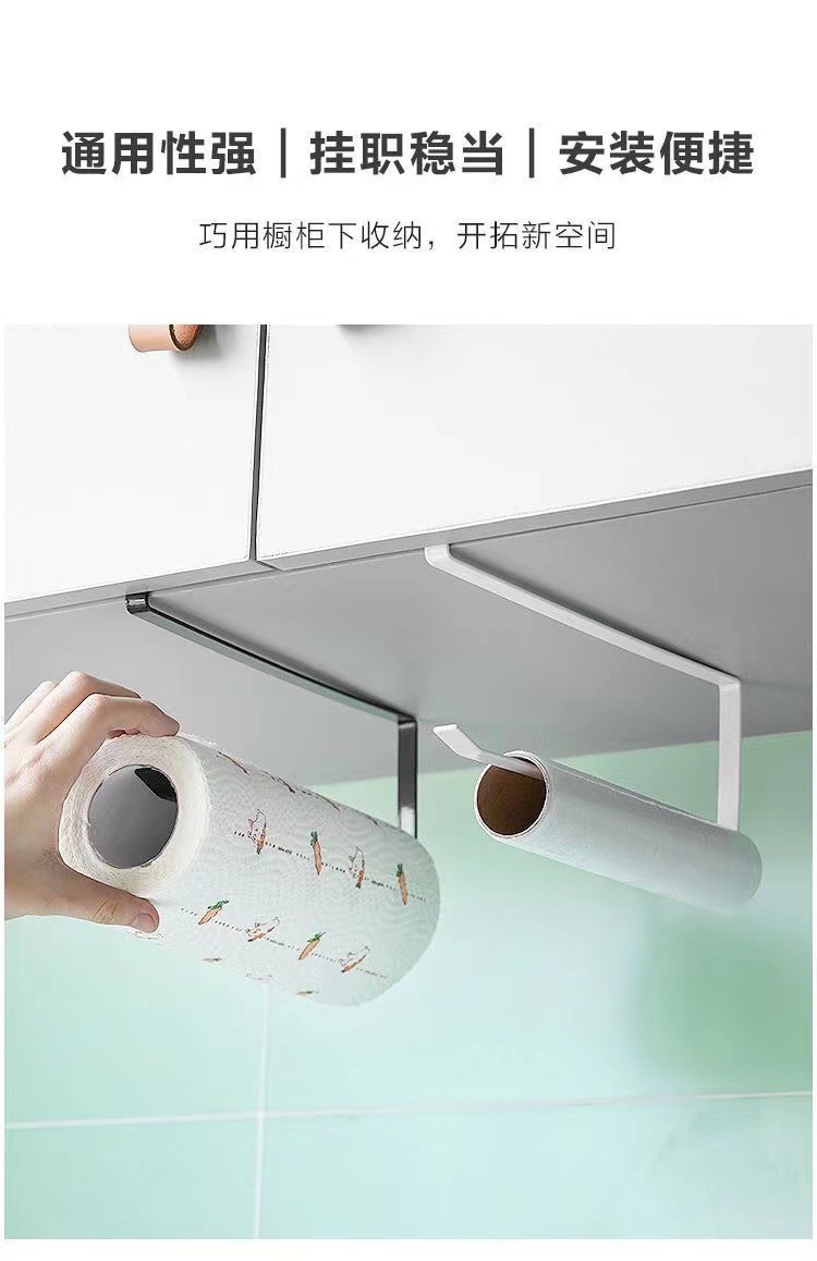 kitchen towel rack punch-free cabinet roll stand storage rack dishcloth stand plastic wrap rag storage rack 中文版