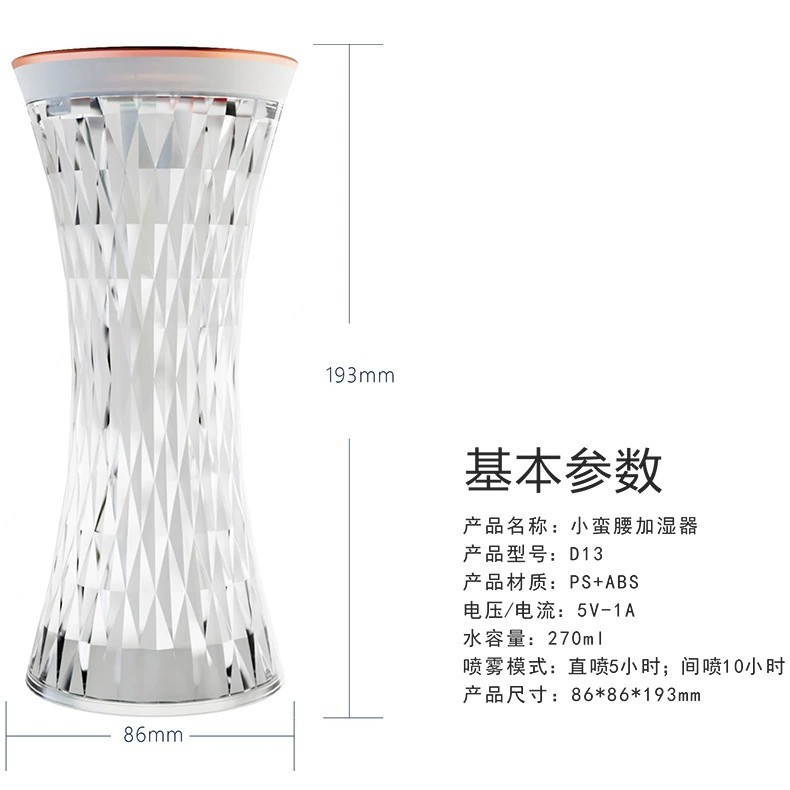 Function description: Humidifier function (direct/indirect spray) + LED atmosphere light function + touch control function (management of light)