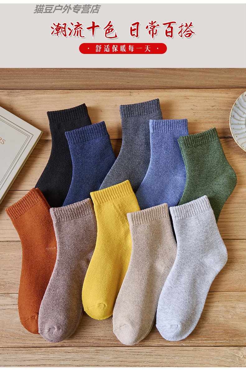 | 10 pairs: army green + denim blue + turmeric + orange + caramel +2 black +2 dark gray + light gray | ¥21.98 | 99996 pair available |