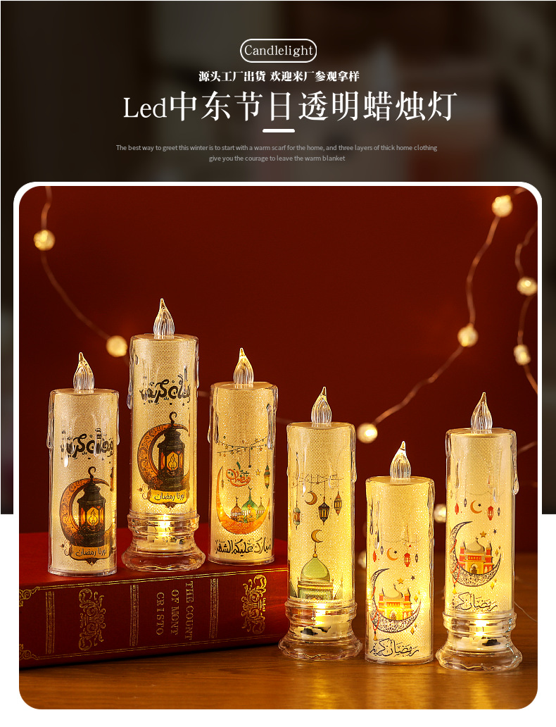 middle east led clear crystal electric candle lamp party decoration eid mubarak desktop small ornaments 中文版