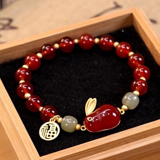 red bead blessing card jade hare bracelet