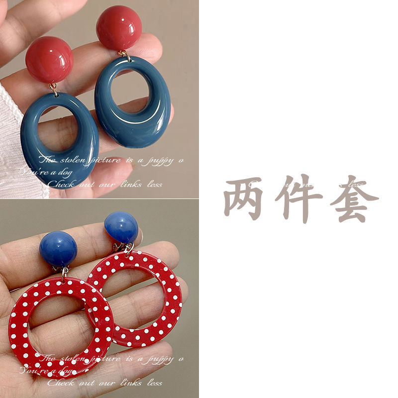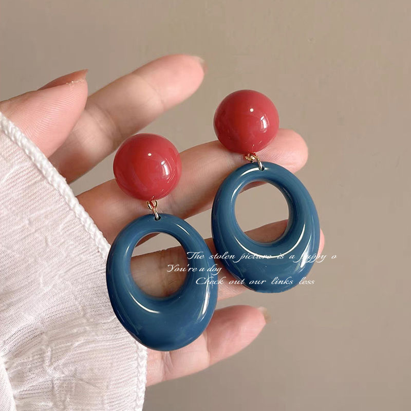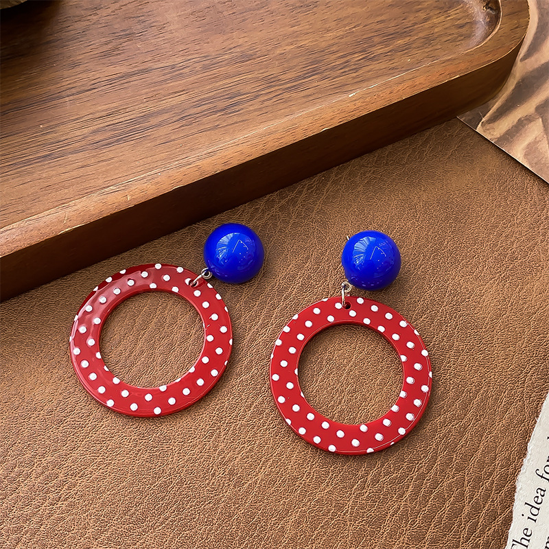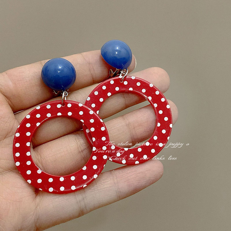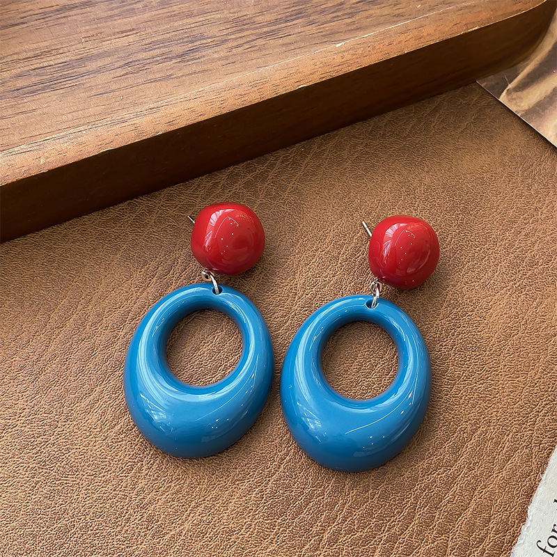 7-blue retro contrast color circle ear studs