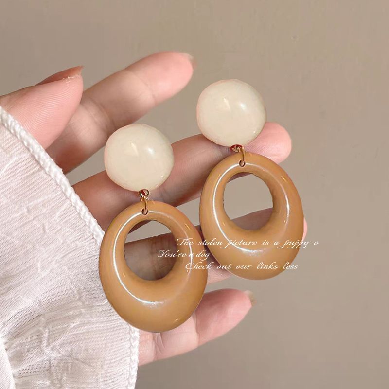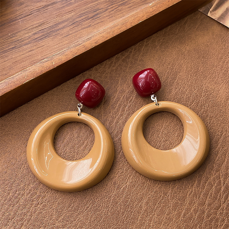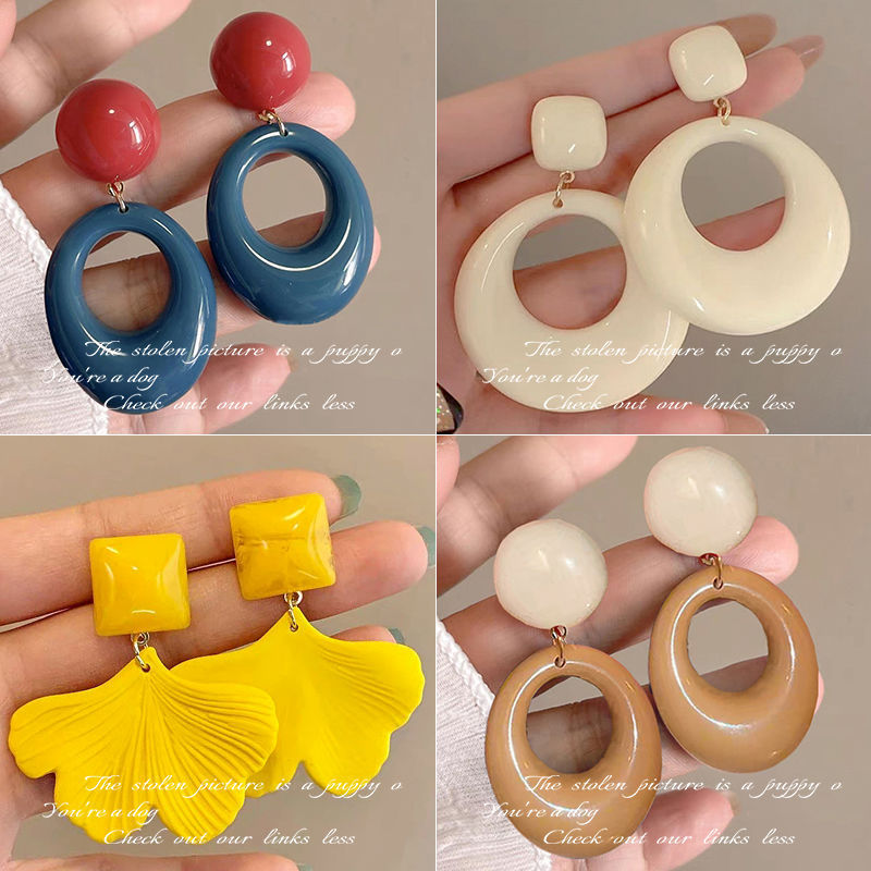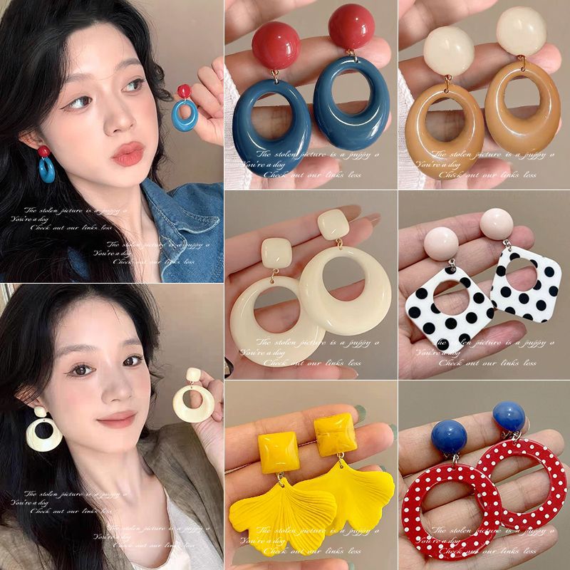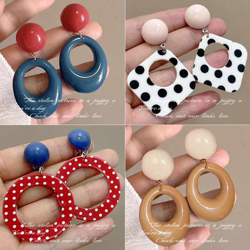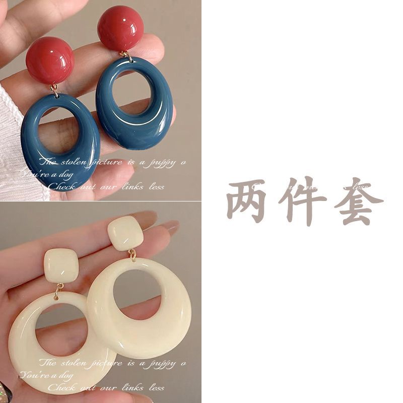 7-blue retro contrast color circle ear studs