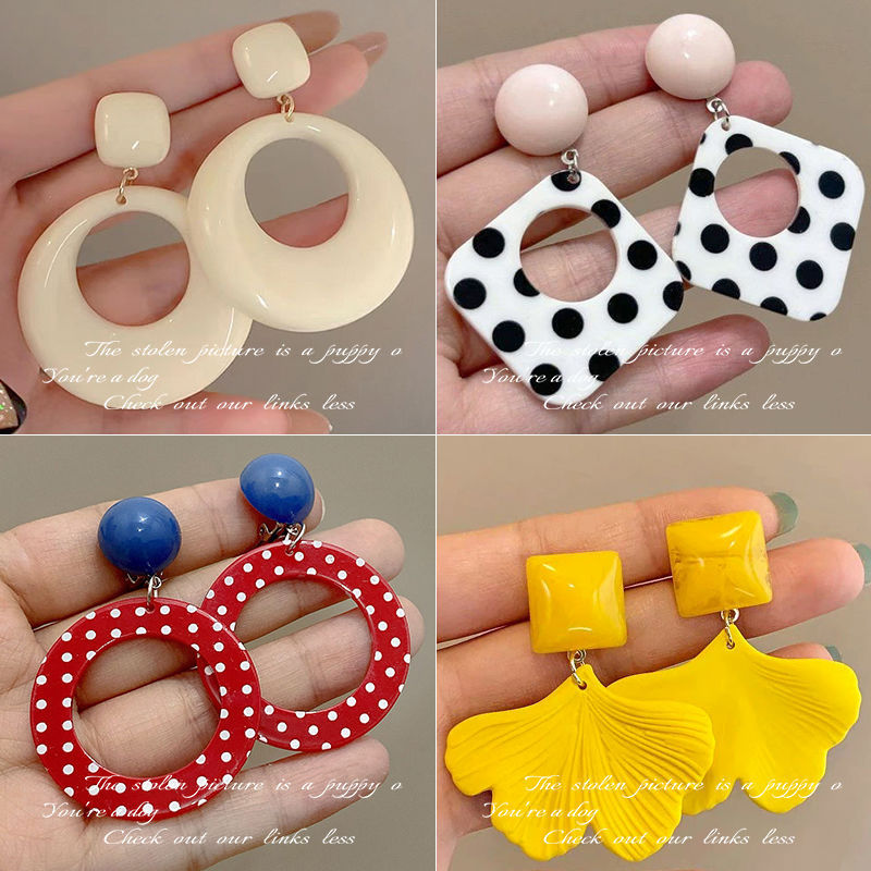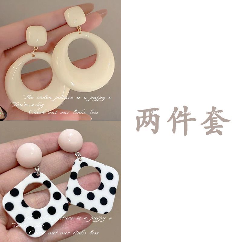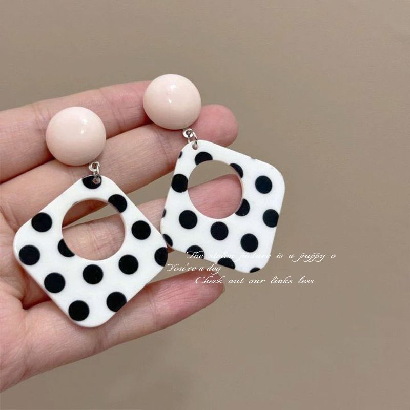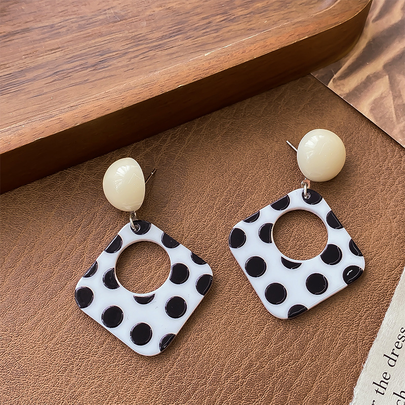 2-hollow square polka dot earrings