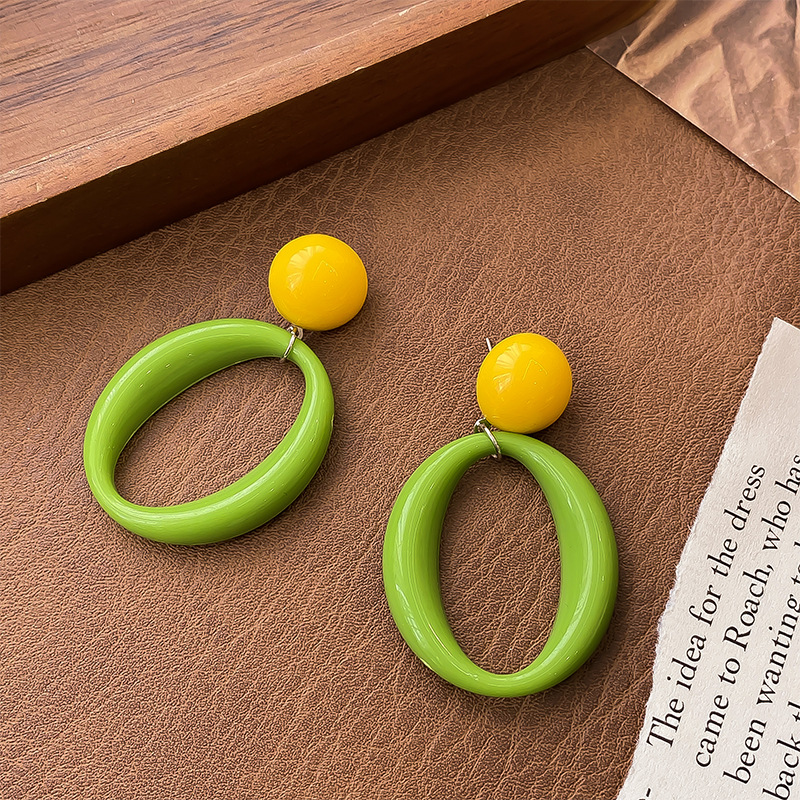 1-assorted yellow green oval earrings