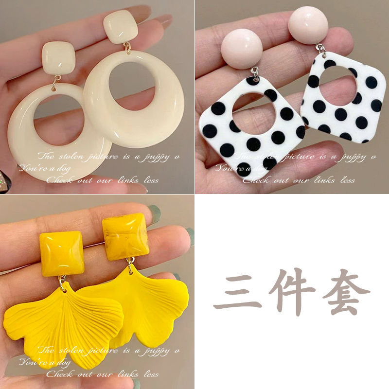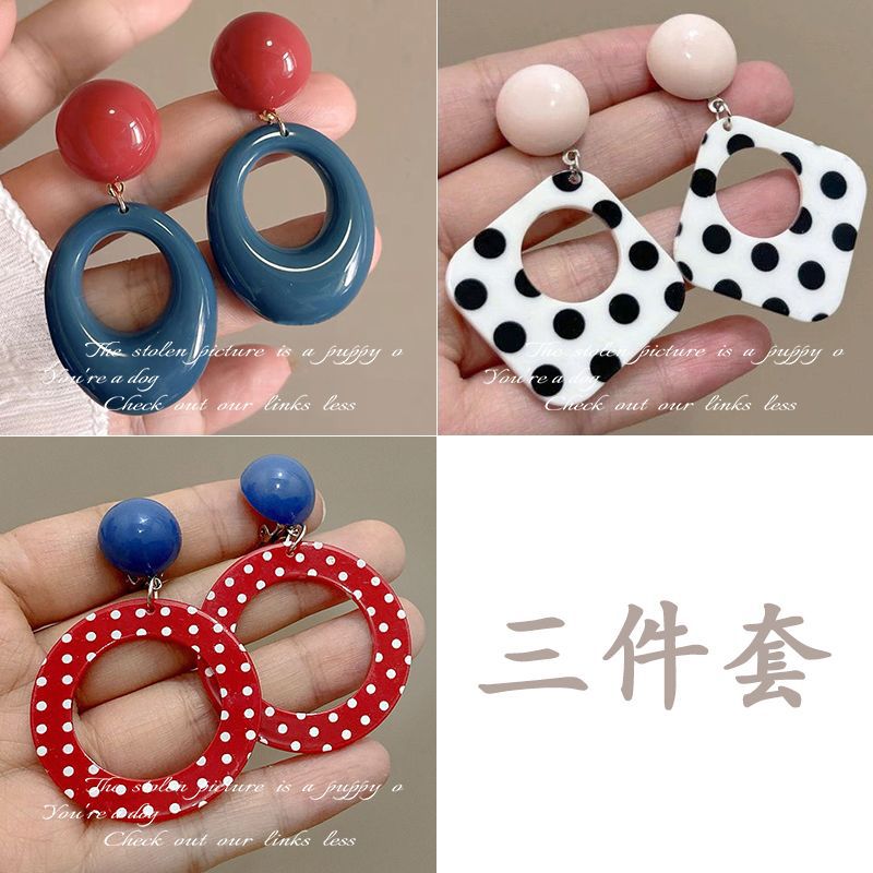3-openwork circle polka dot stud earrings