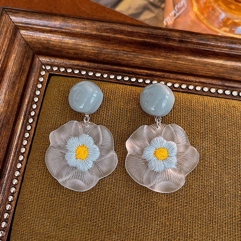 blue flower stud earrings