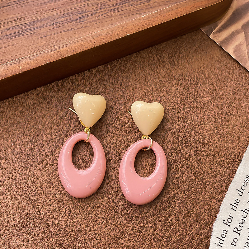 8-pink ring love heart stud earrings