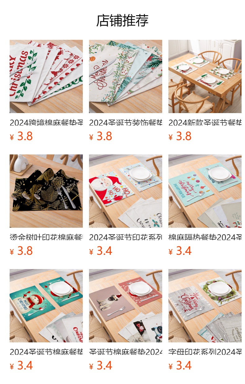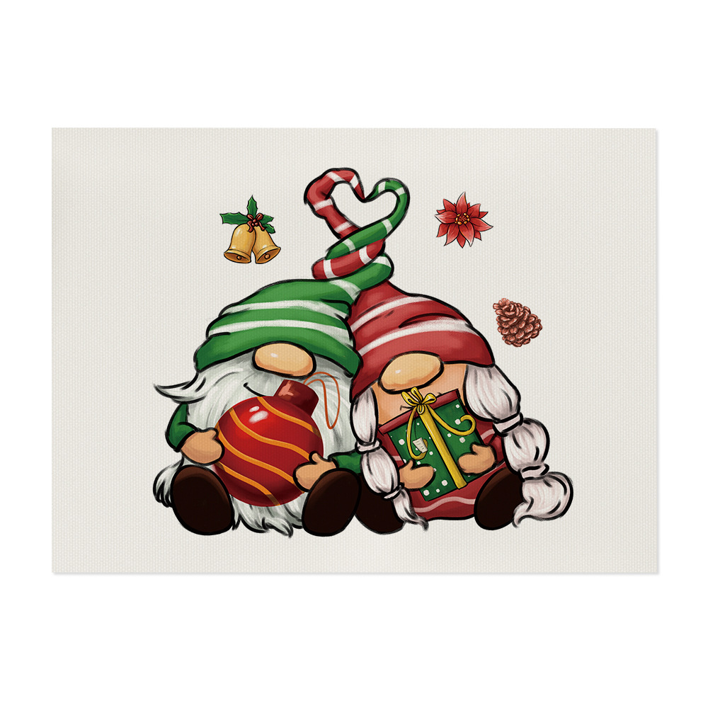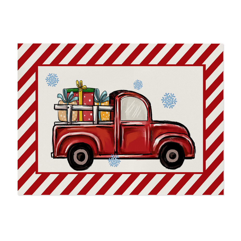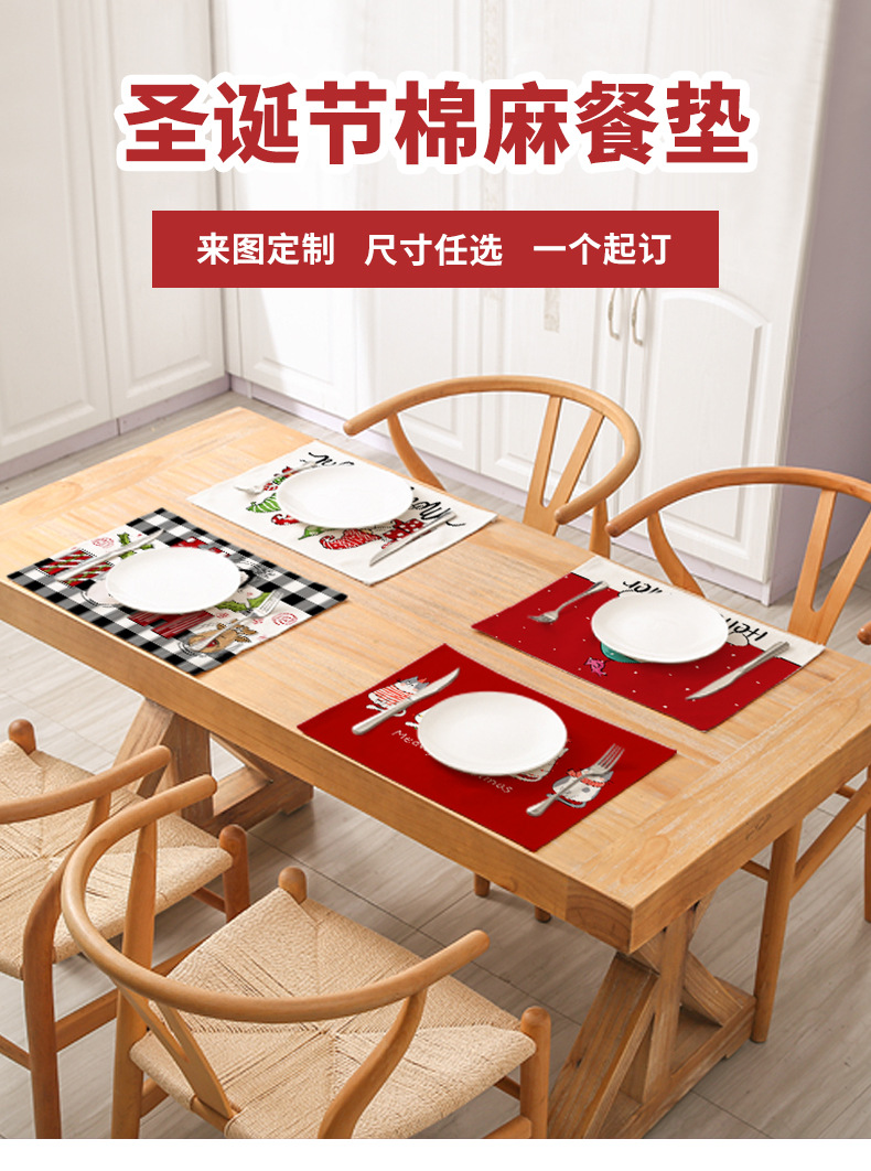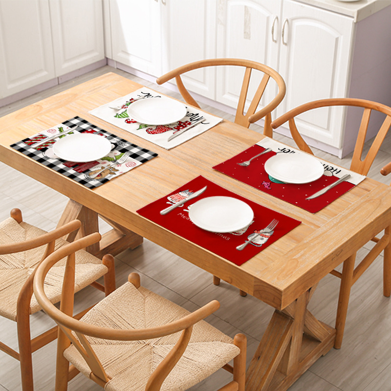 temu cross-border christmas cotton and linen placemat kitchen unit decoration plaid printed heat insulation waterproof placemat simple