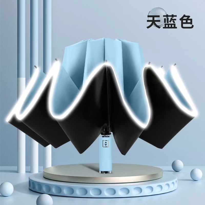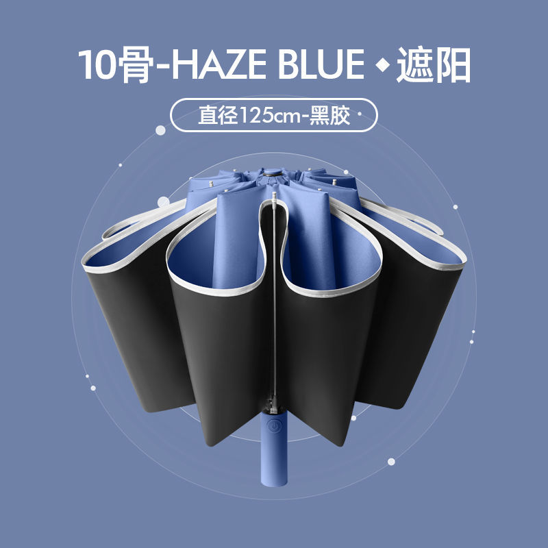 [oversized reverse 10 bones] fully automatic reflective stripe thickened vinyl sun protective haze blue umbrella directly 125cm