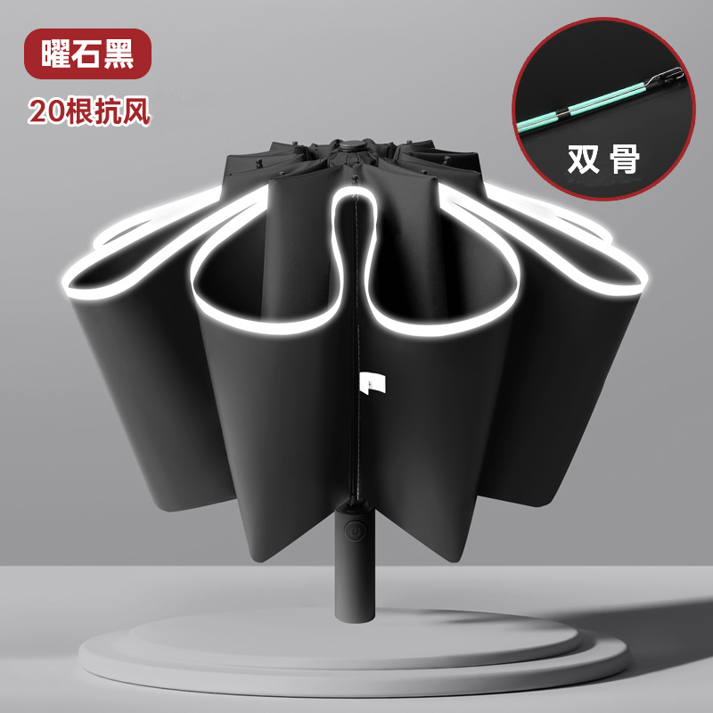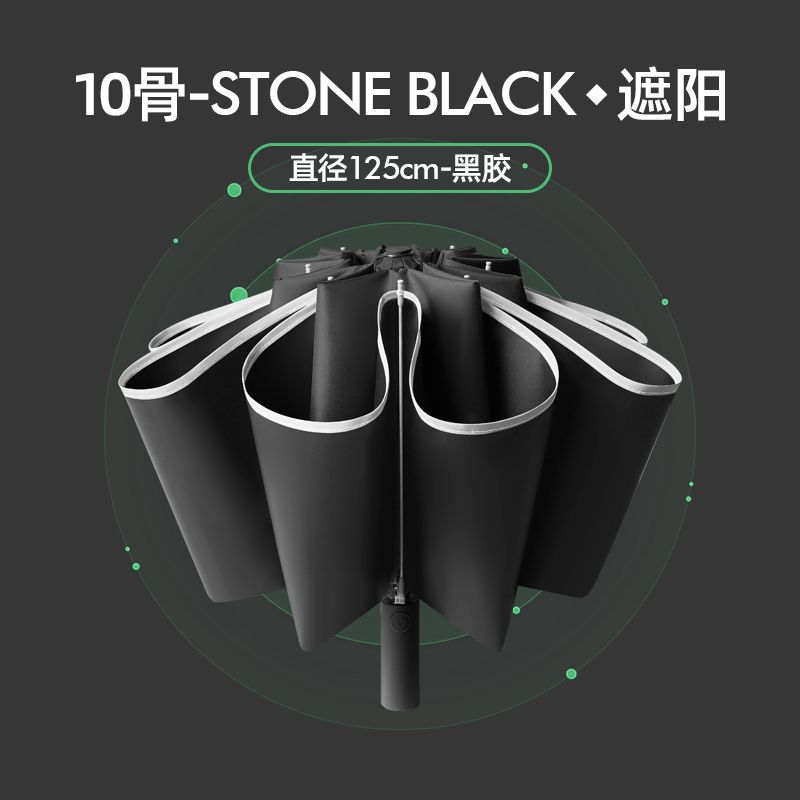 [oversized reverse 10 bones] fully automatic reflective stripe thickened vinyl sun protective black umbrella directly 125cm