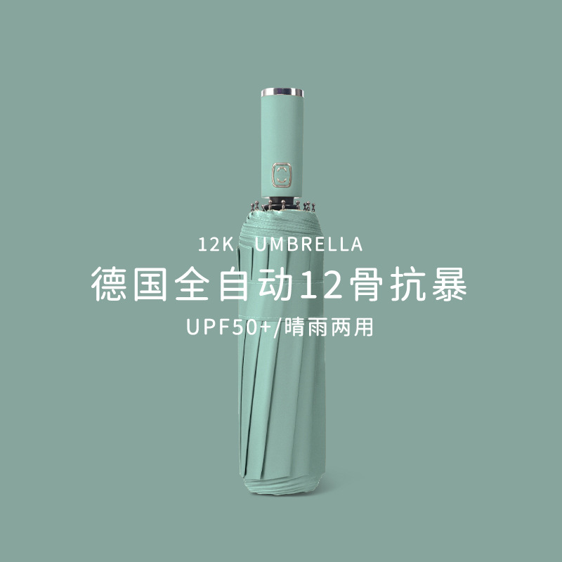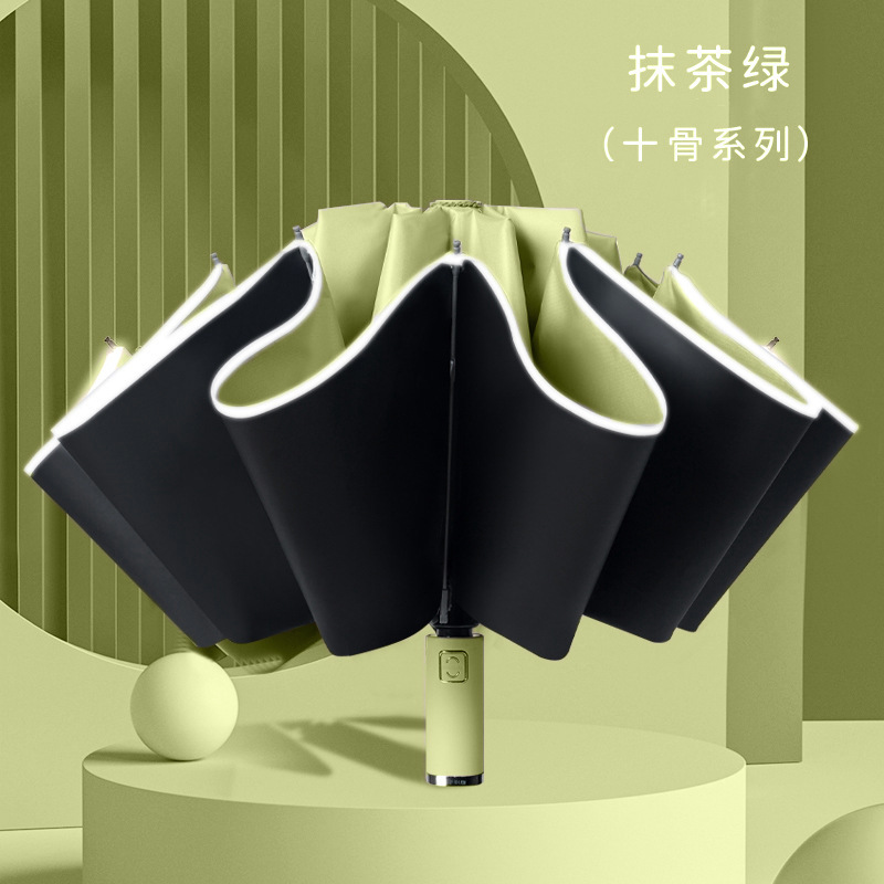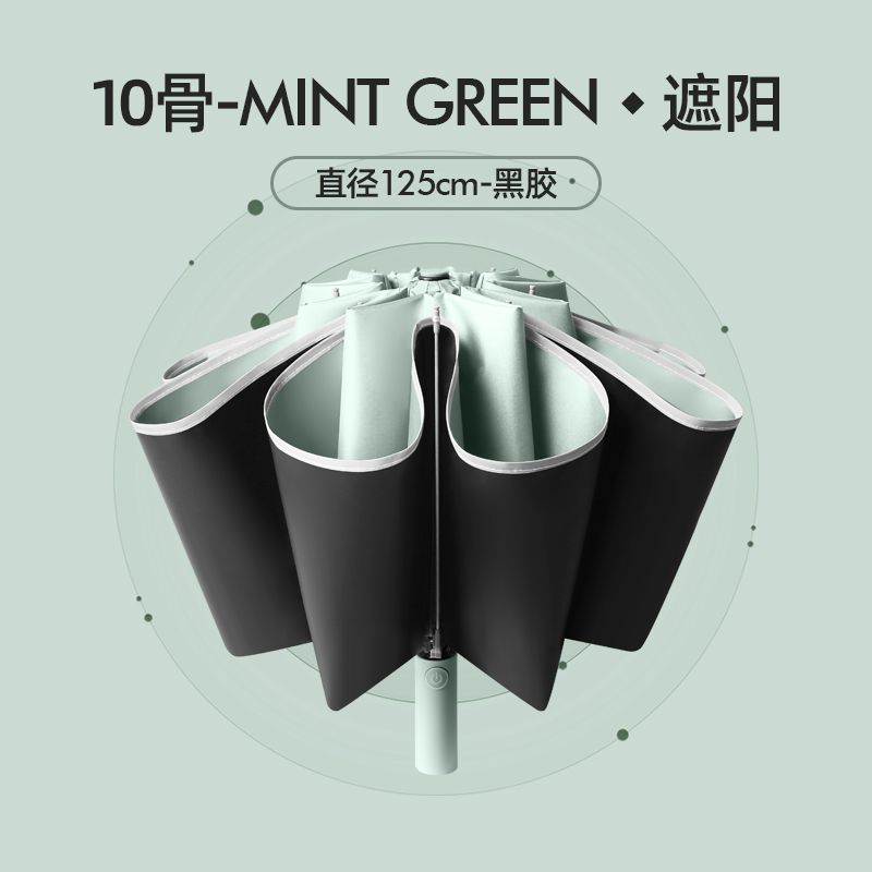 [oversized reverse 10 bones] fully automatic reflective stripe thickened vinyl sun protective morning mist green umbrella directly 125cm