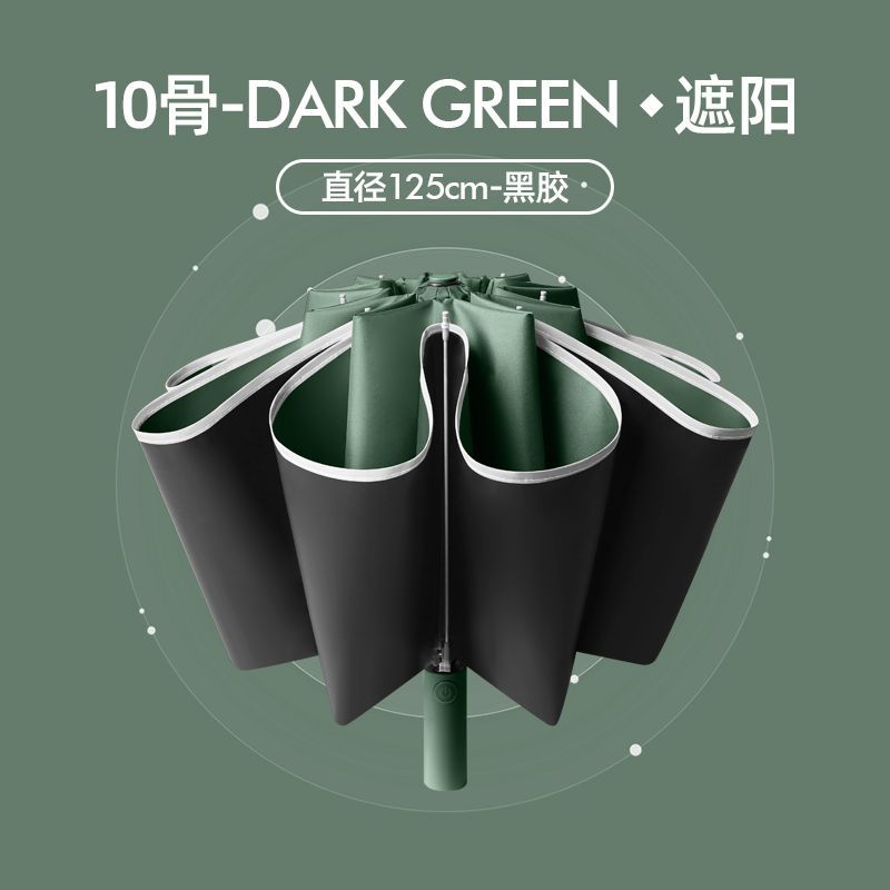 [oversized reverse 10 bones] fully automatic reflective stripe thickened vinyl sun protective forest green umbrella directly 125cm