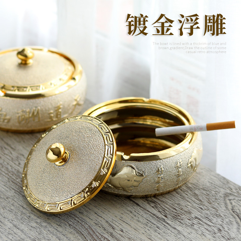 gold-plated -- fortune cattle ashtray (with lid)