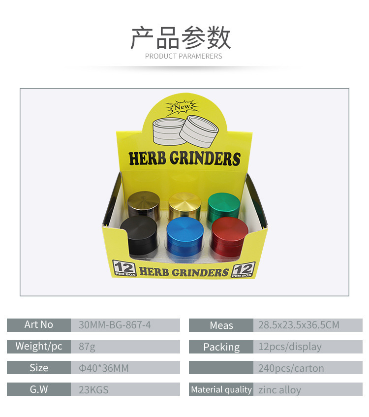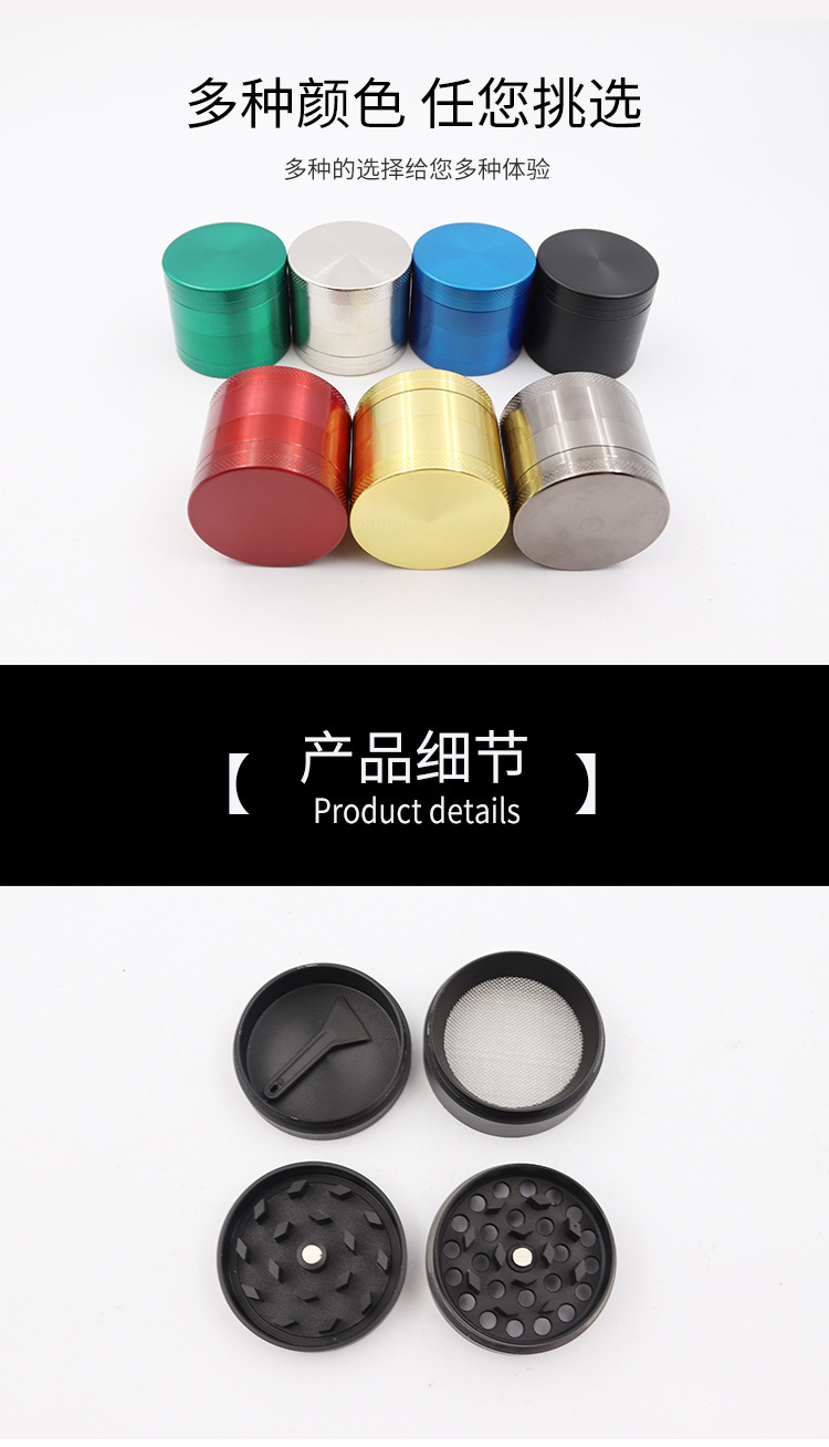 cross-border manual pipe smoke eliminator four-layer 50mm zinc alloy tobacco grinder smoke eliminator metal cigarette crusher smoking set accessories wholesale 中文版