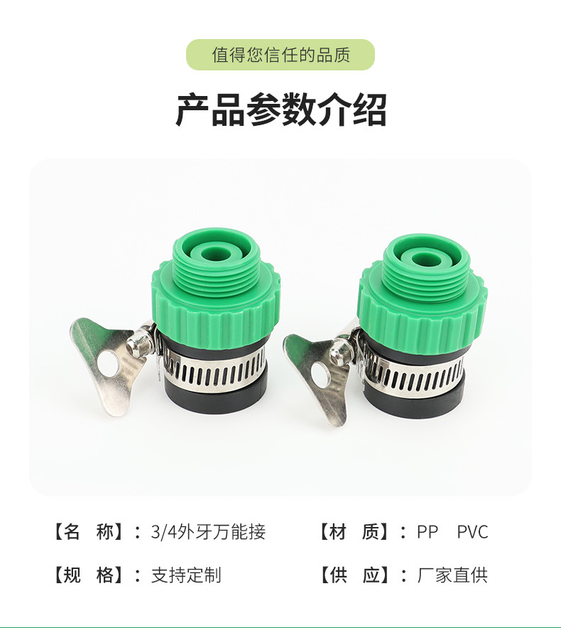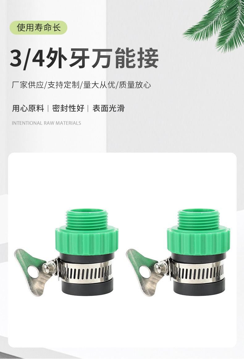 Material: plastic item No:3/4 outer teeth universal connection import or not: no type:" water pipe connector features: faucet connector