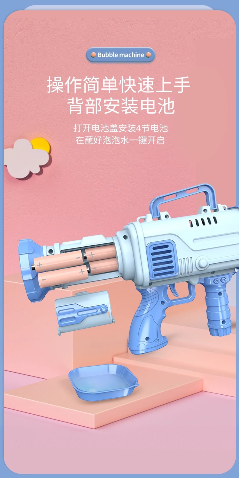 bazooka bubble gun [pink] self-provided battery