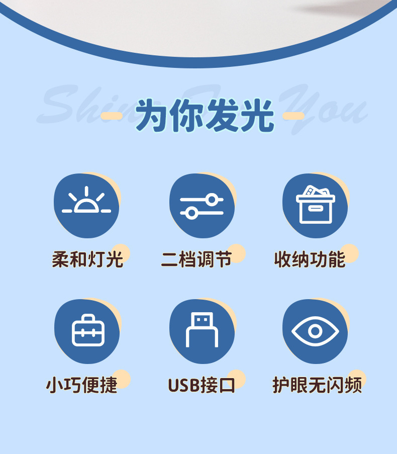 【Product Name】: HuaHua USB Charging Eye Protection Night Light