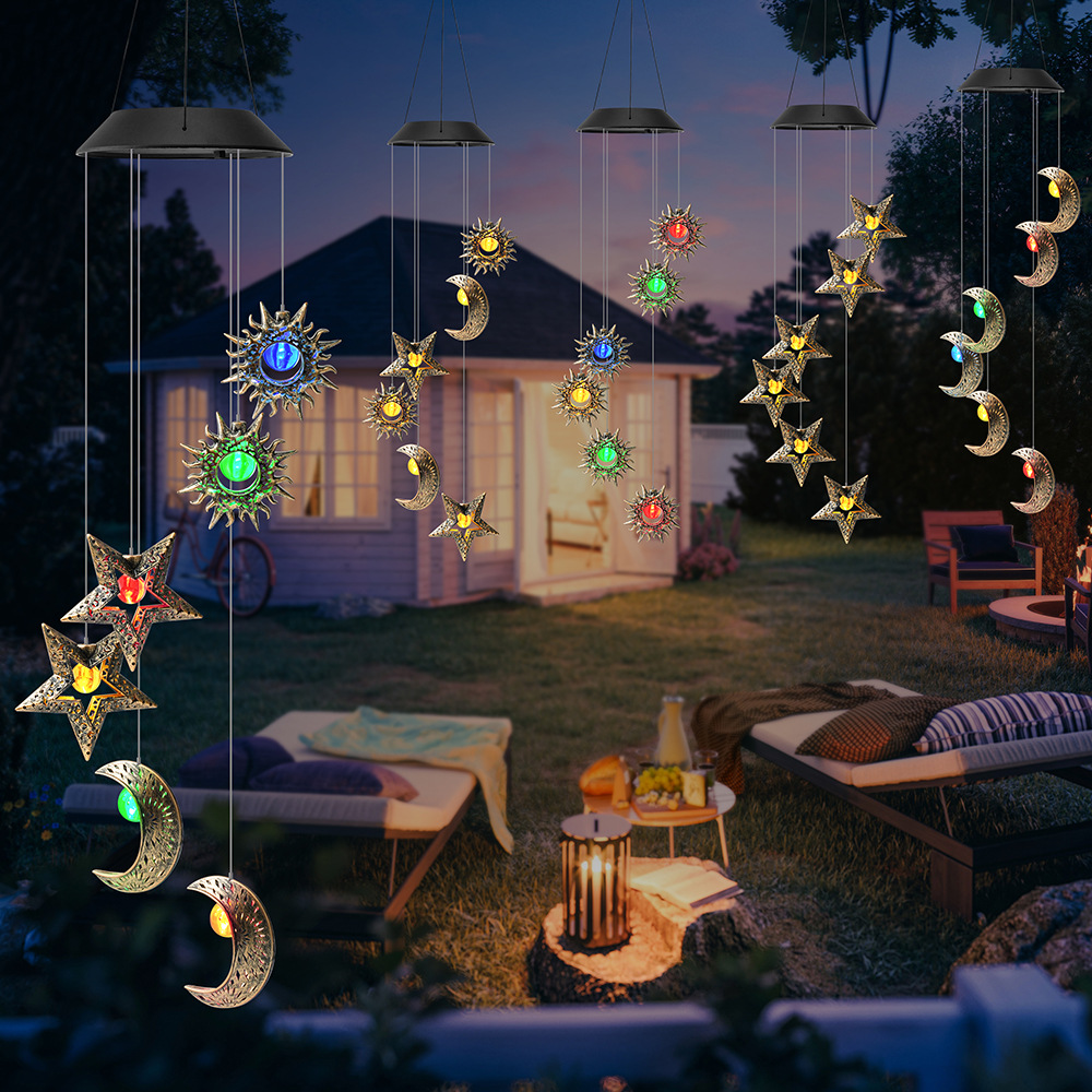 solar garden lamp new retro hollow moon outdoor balcony garden landscape wind chimes pendant atmosphere decorative lights