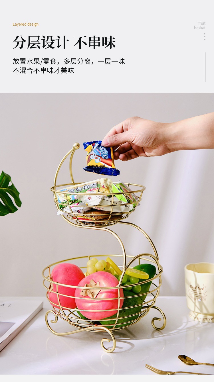 double deck fruit plate coffee table light luxury high-grade simple fashion living room good-looking household fruit plate european style fruit basket iron 中文版