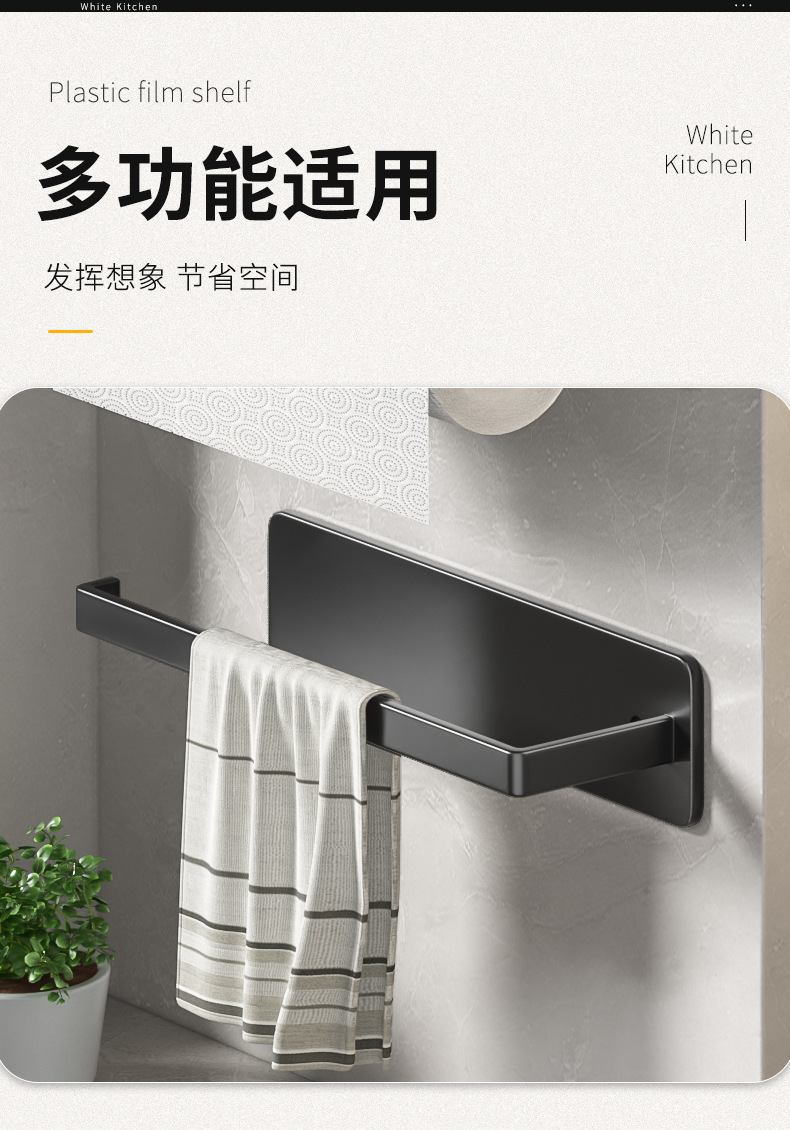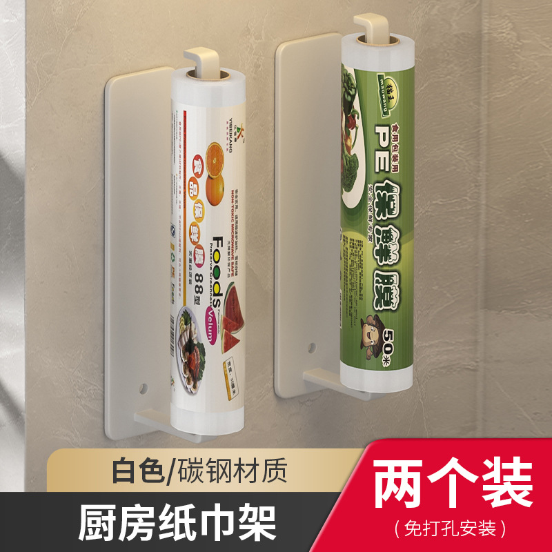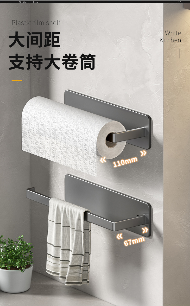 strong self-adhesive plastic wrap rag storage rack wall-mounted cabinet roll stand hole-free gun gray kitchen towel rack