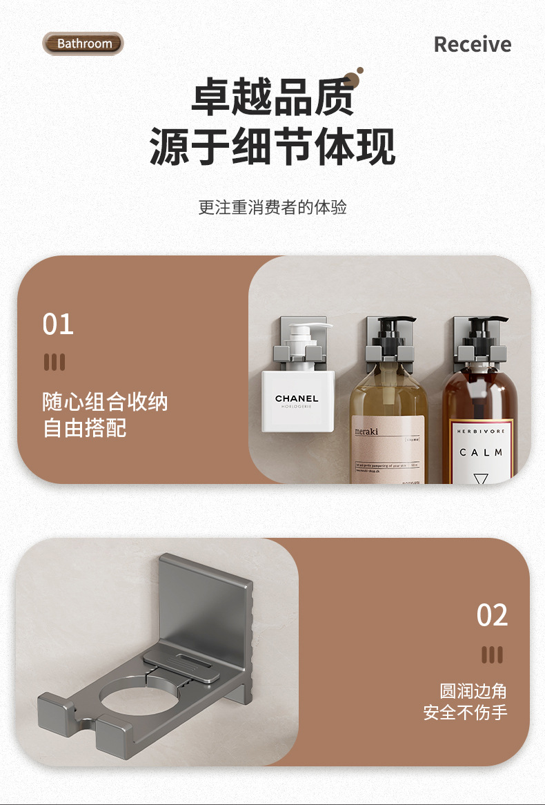 punch-free shower gel storage rack detergent wall mount bathroom shampoo hand sanitizer storage bracket