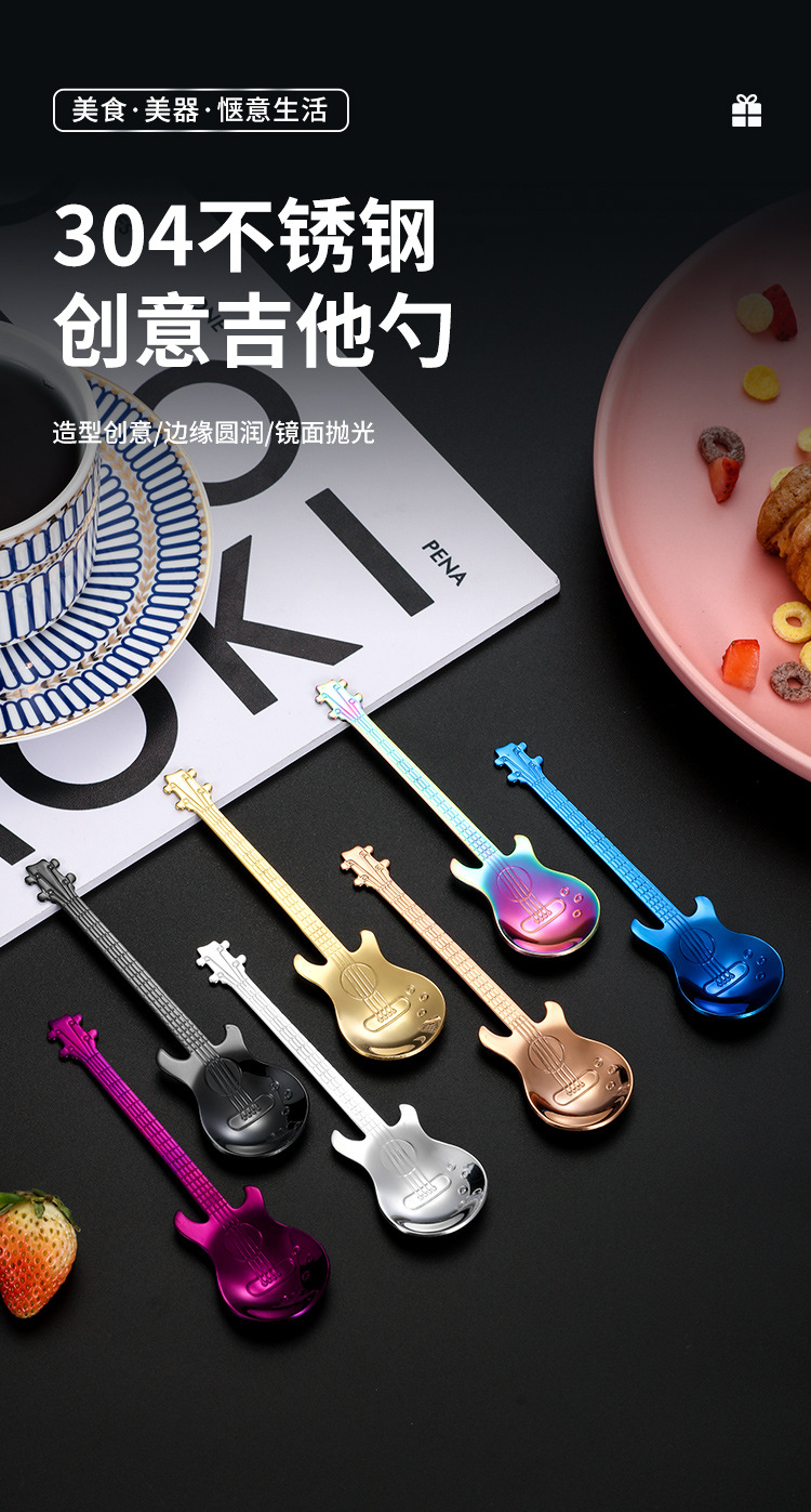 Amazon 304 Stainless Steel Spoon Guitar Spoon Coffee Stir Spoon Ice Bar Spoon Music Bar Spoon Mug Spoon 中文版