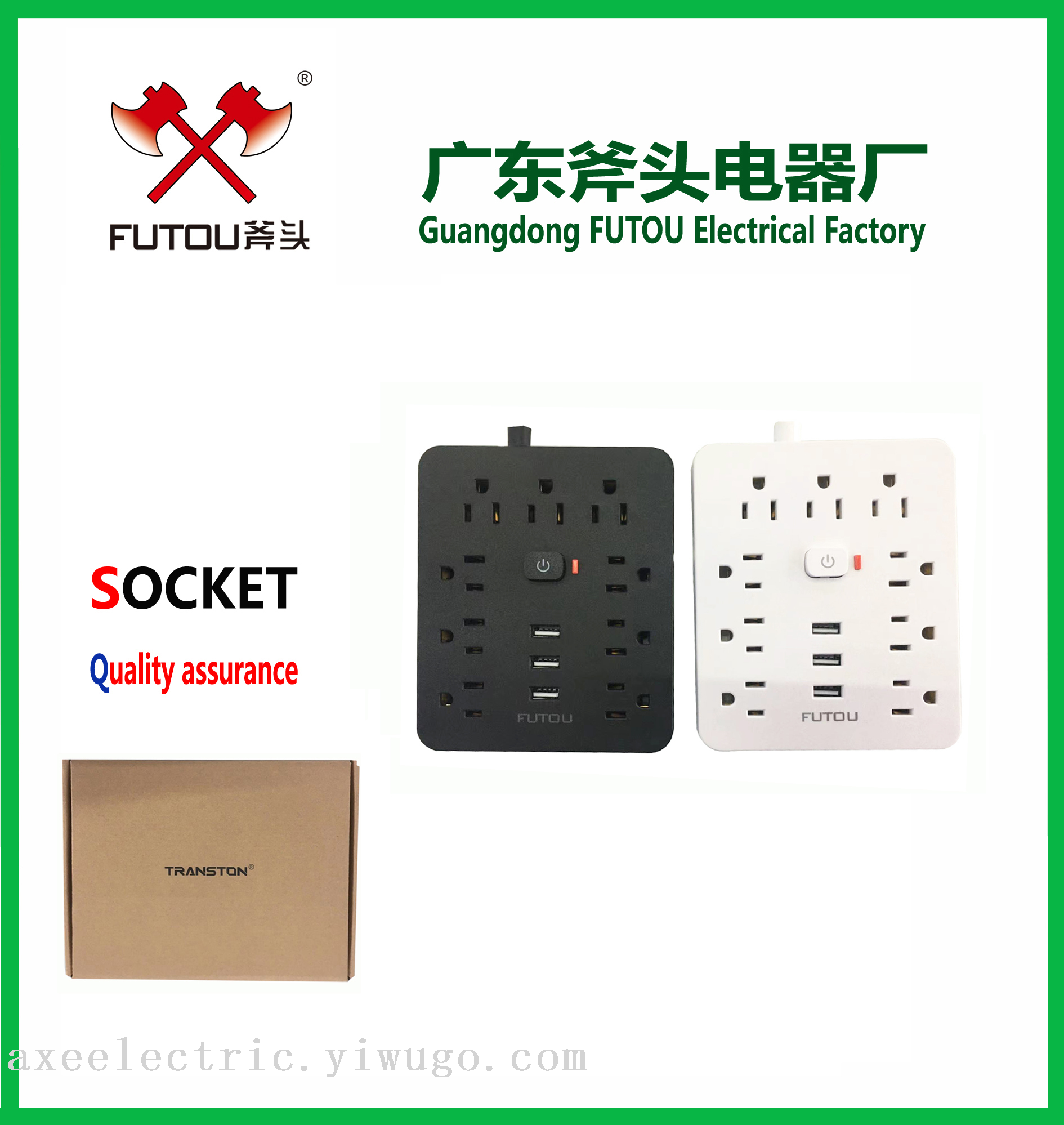 With own brands “AXE”, “FUTOU” ranking the first class in Chinese socket industry.