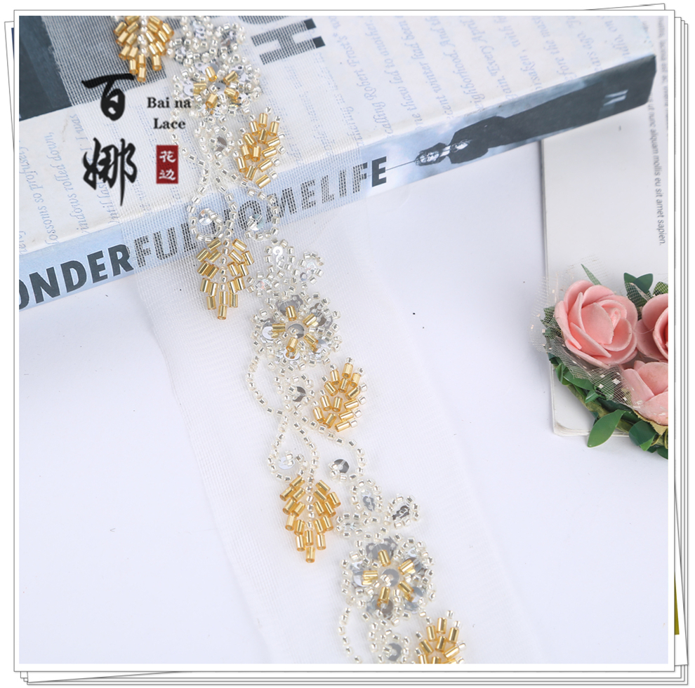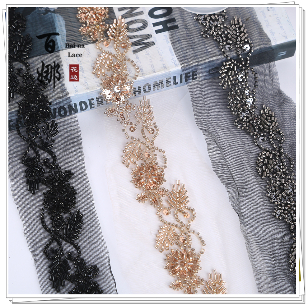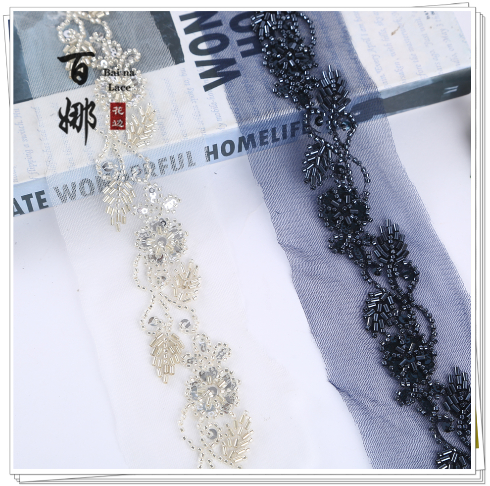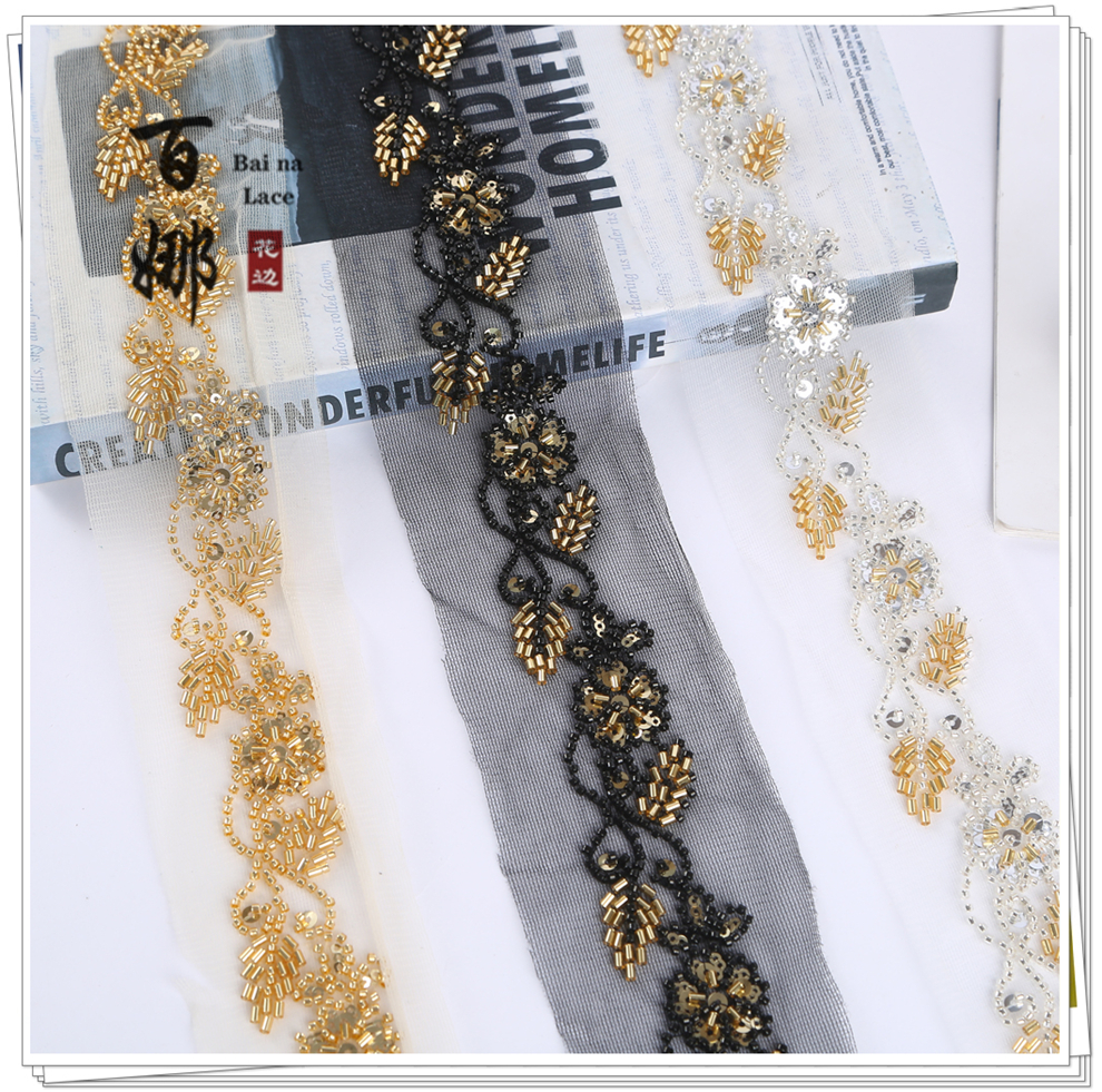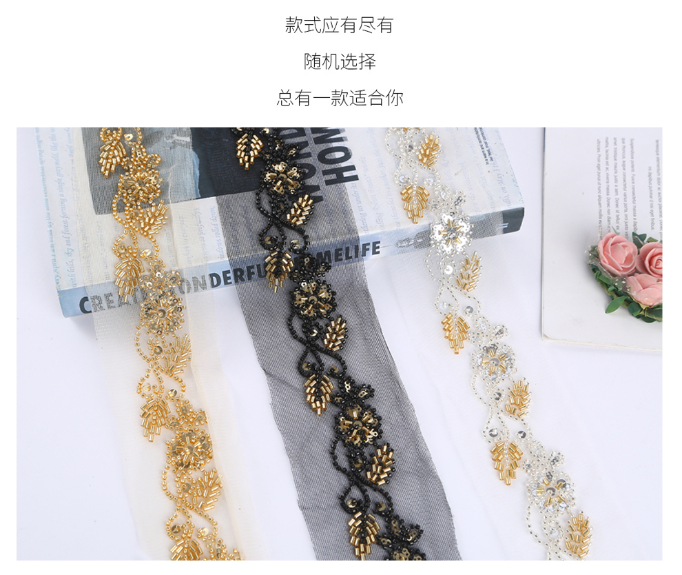 Product Name: Handmade DIY Beaded Tube Sequins Lace Ribbon Fabric Accessories Wholesale - Multiple Colors Available