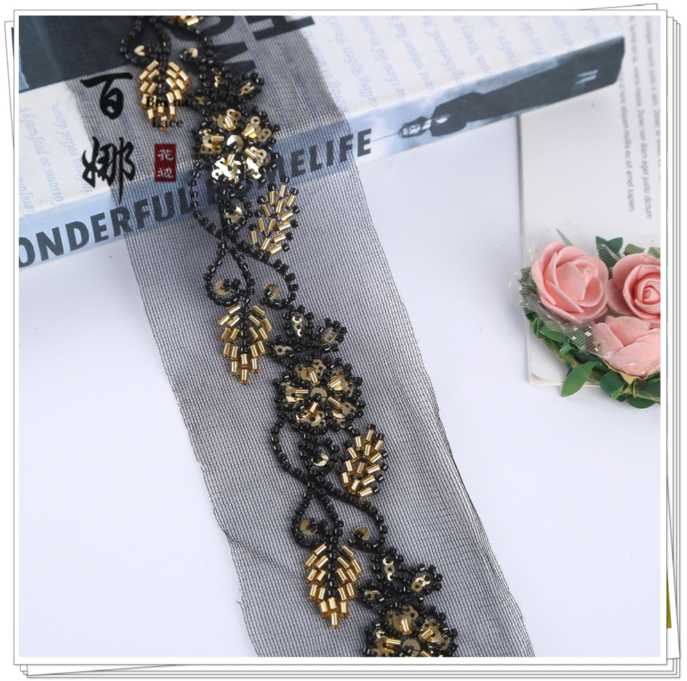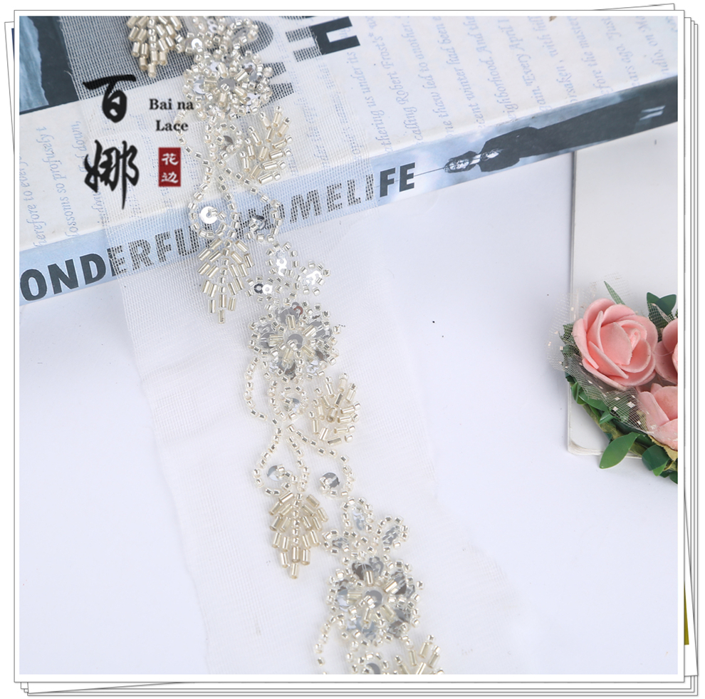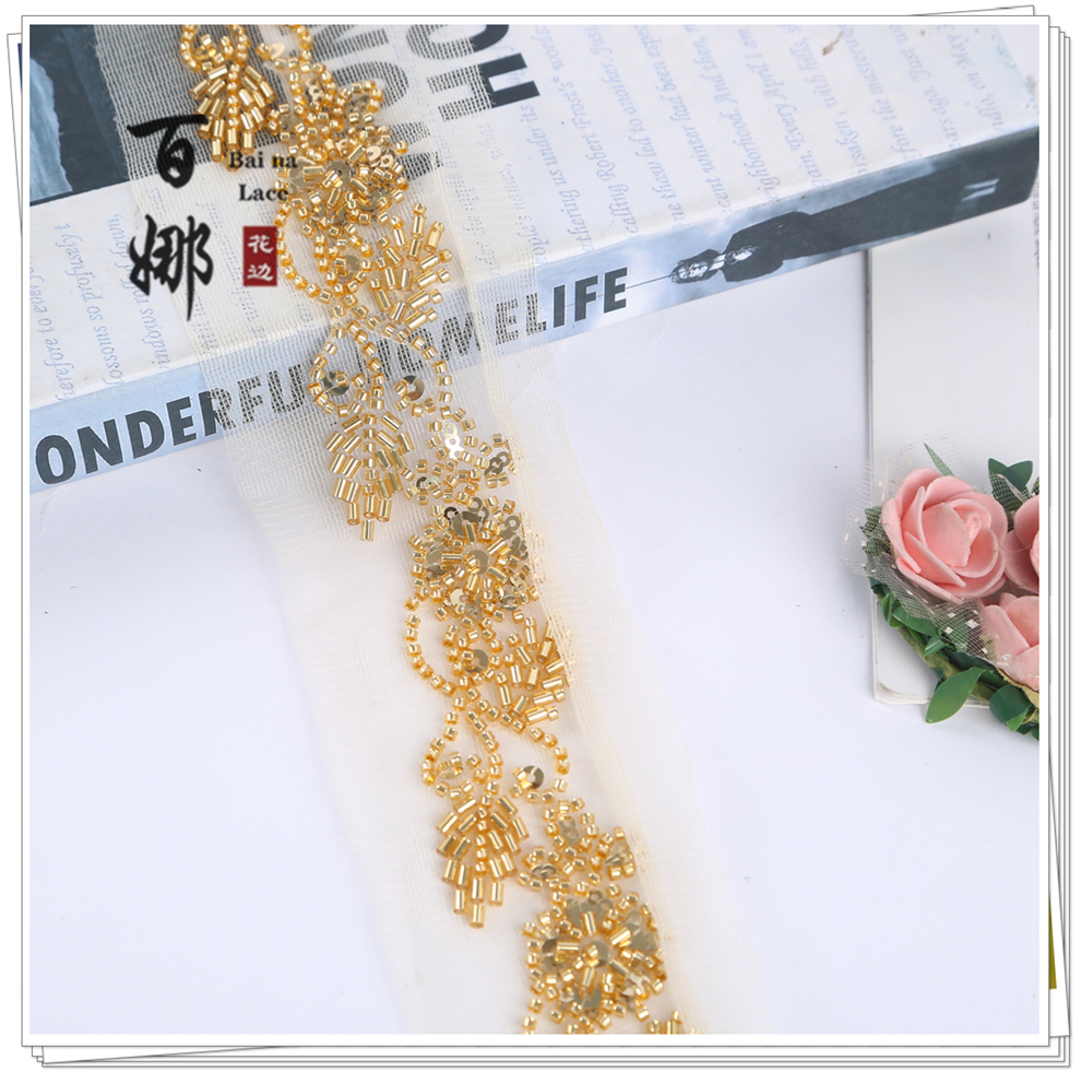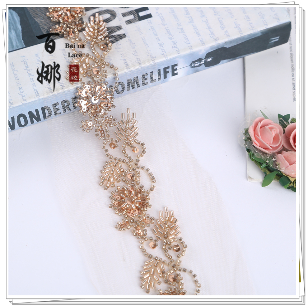 Product Name: Handmade DIY Beaded Tube Sequins Lace Ribbon Fabric Accessories Wholesale - Multiple Colors Available