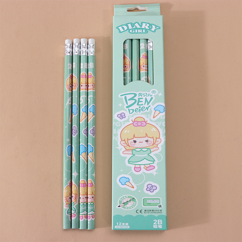 Student Pencil 2B a Box of 12 Balls Girls Lovely Cartoon Pencil Suit Primary School Students Essential Stationery Gift Box