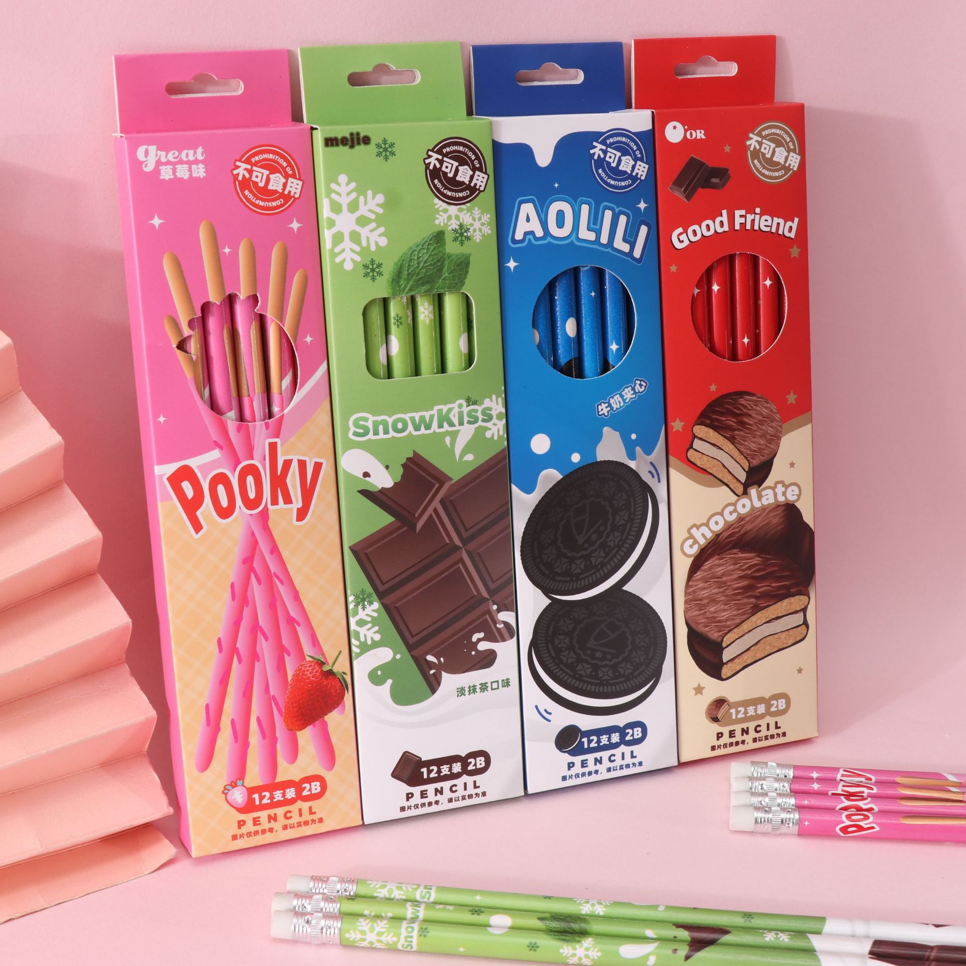 new cartoon snack pencil 2b a box of 12 boxed pencils student only pencil essential stationery for learning 中文版