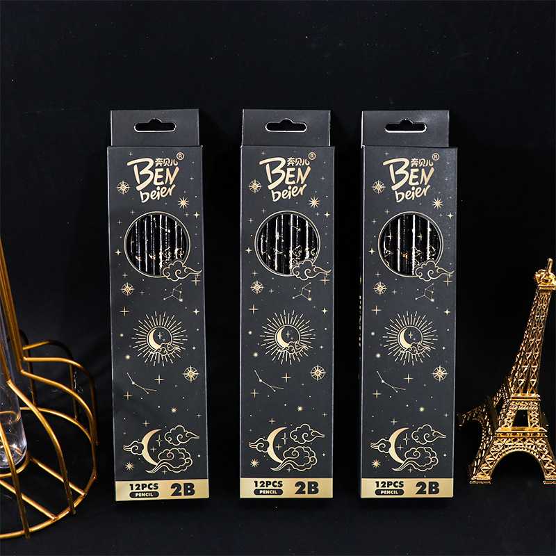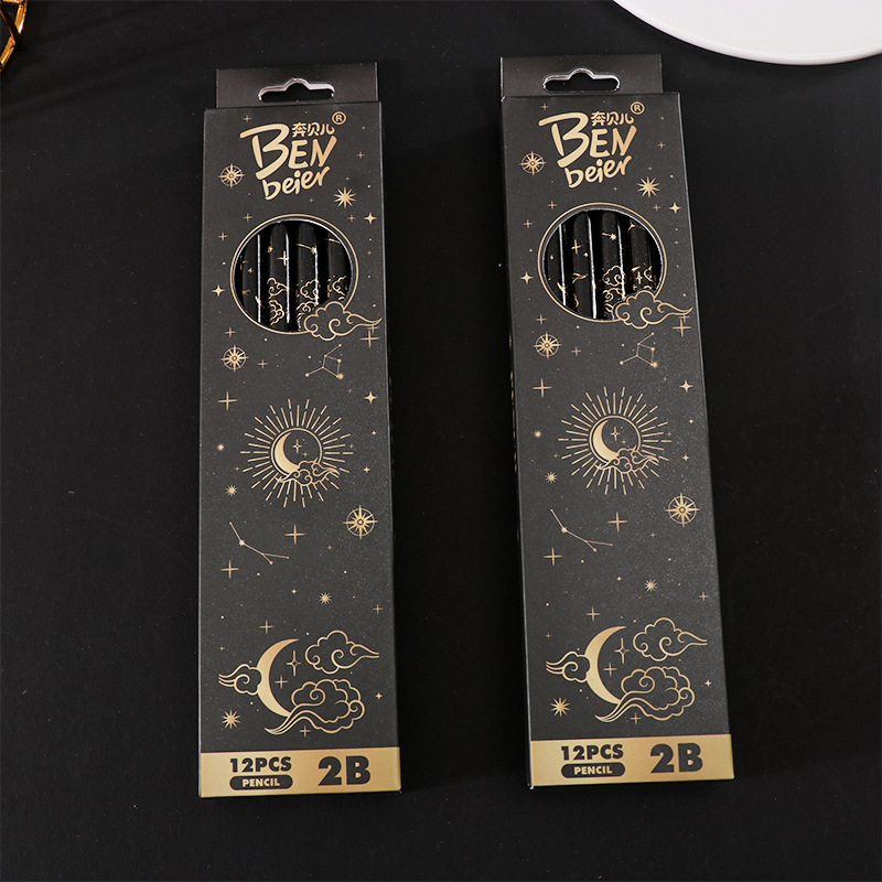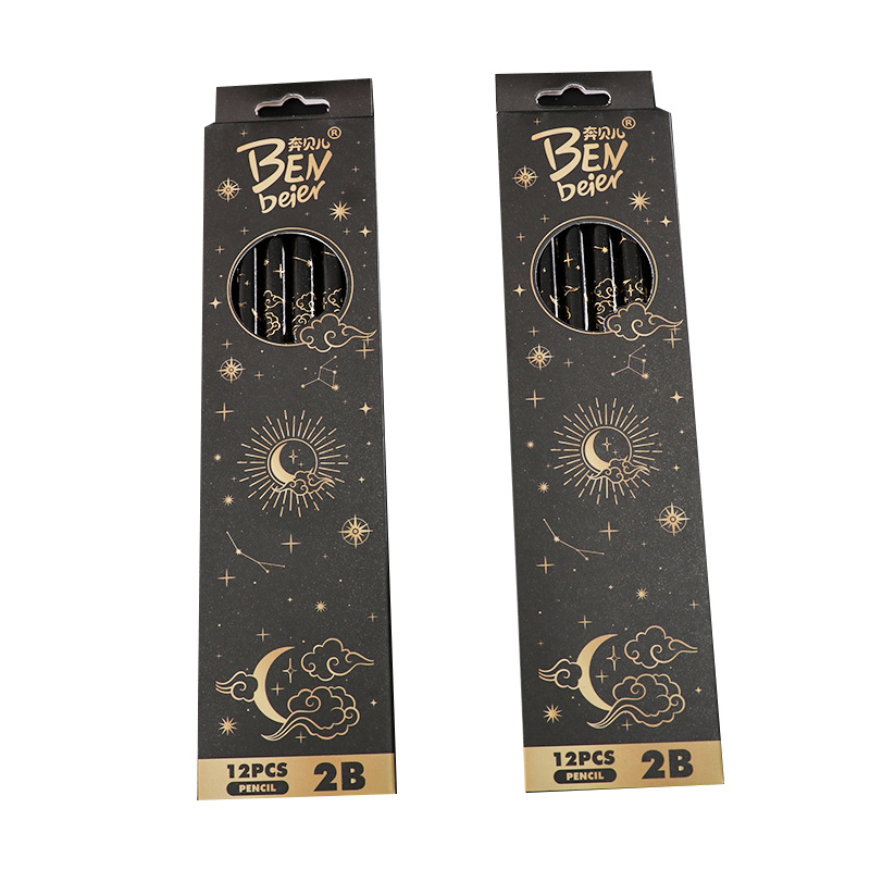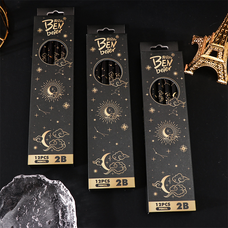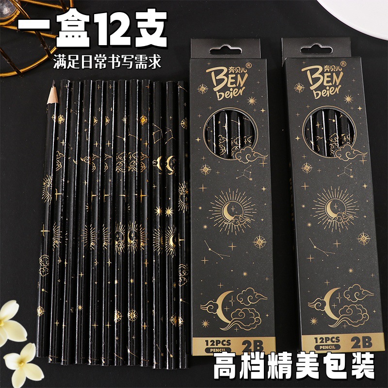 student 2b pencil log high-end sketching pencil black boxed pupils' stationery children's special learning tools 中文版