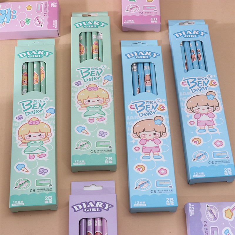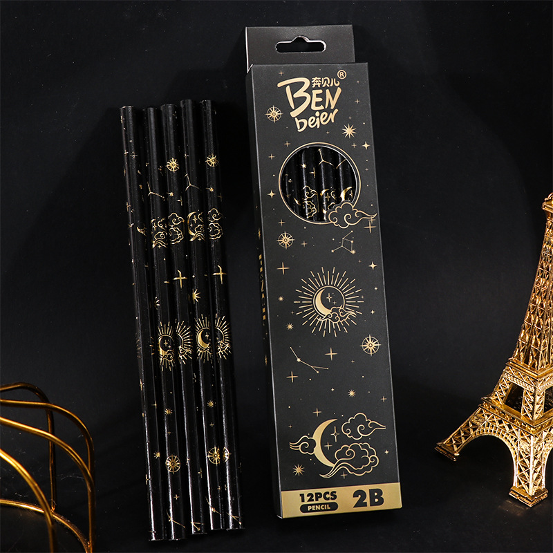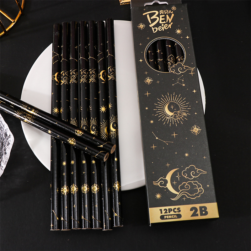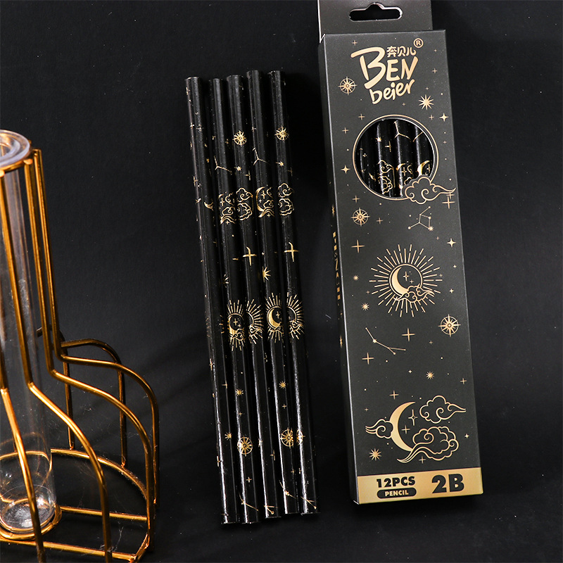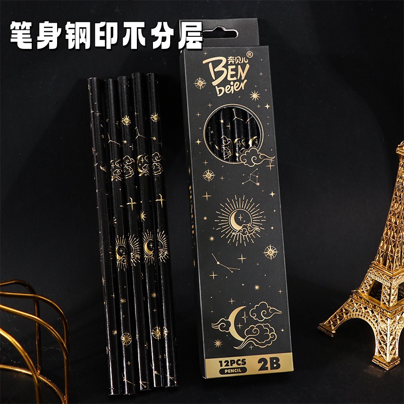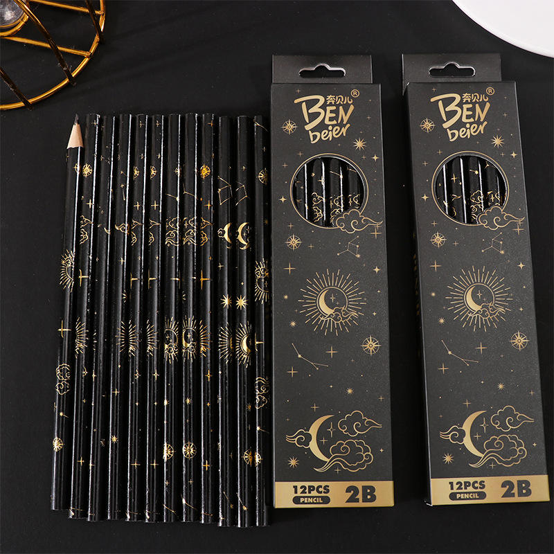 student 2b pencil log high-end sketching pencil black boxed pupils' stationery children's special learning tools 中文版